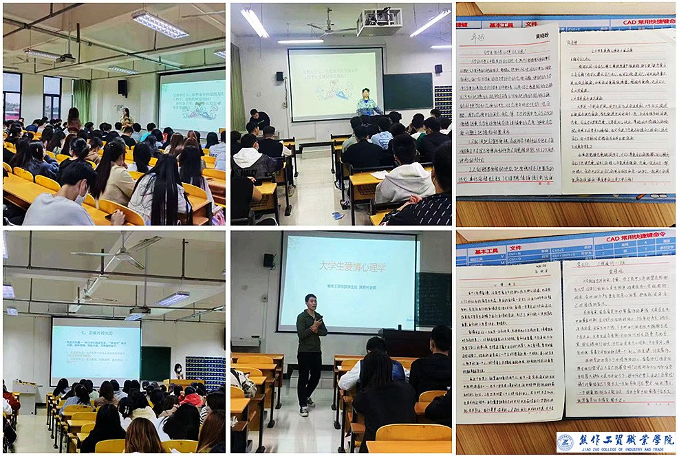 学生处陈艳利老师精心制作了“大学生爱情心理学”专题PPT,就当代大学生普遍存在的13个对待爱情的非理性观念一一作出解释,引导学生树立正确的恋爱观。各学院辅导员认真学习了宣讲课件内容,在主题班会上积极宣讲恋爱心理知识,强调爱情固然价更高,但爱情不是人生的根本宗旨,更不是人生的全部,只为爱情而活着是苍白的,今天的学习与未来的事业息息相关,也是爱情美满的基础。随后组织学生开展讨论,使大家深刻明白了对待爱情的正确态度。