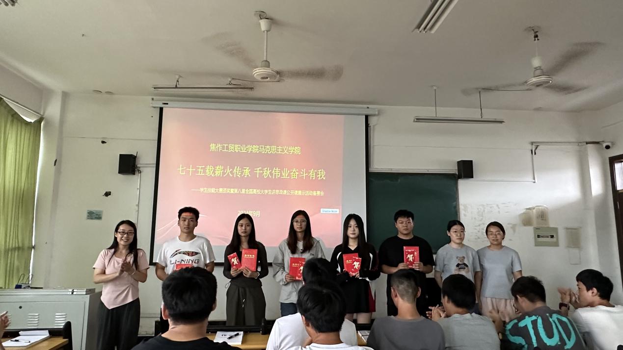 为表彰在第七届全国高校大学生讲思政课公开课展示活动中获奖同学,同时鼓舞优秀学子再创辉煌勇攀高峰,9月18日,马克思主义学院举行了“七十五载薪火传承 千秋伟业奋斗有我”主题学生技能大赛颁奖暨第八届全国高校大学生讲思政课公开课展示活动备赛会。马克思主义学院教师以及部分学生代表参与此次会议。