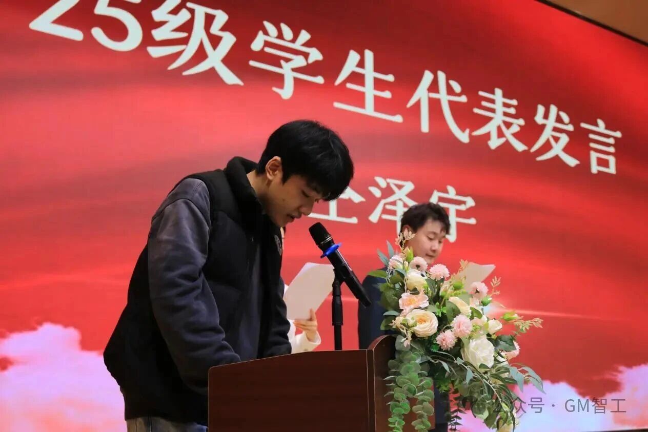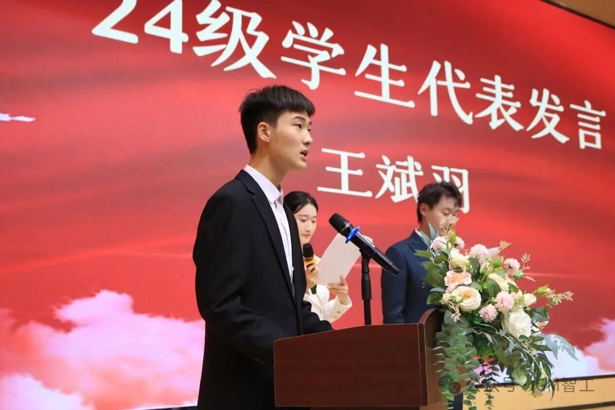 获奖代表24级学生王斌羽和25级学生仝泽宇在会上发言,他们分享了自己在校期间的学习心得与成长感悟,感谢学院提供的优质平台和老师们的悉心教导,并表示将把今天的荣誉化为明天前进的动力,不负韶华,继续努力,以更优异的成绩回报母校和社会的培养。