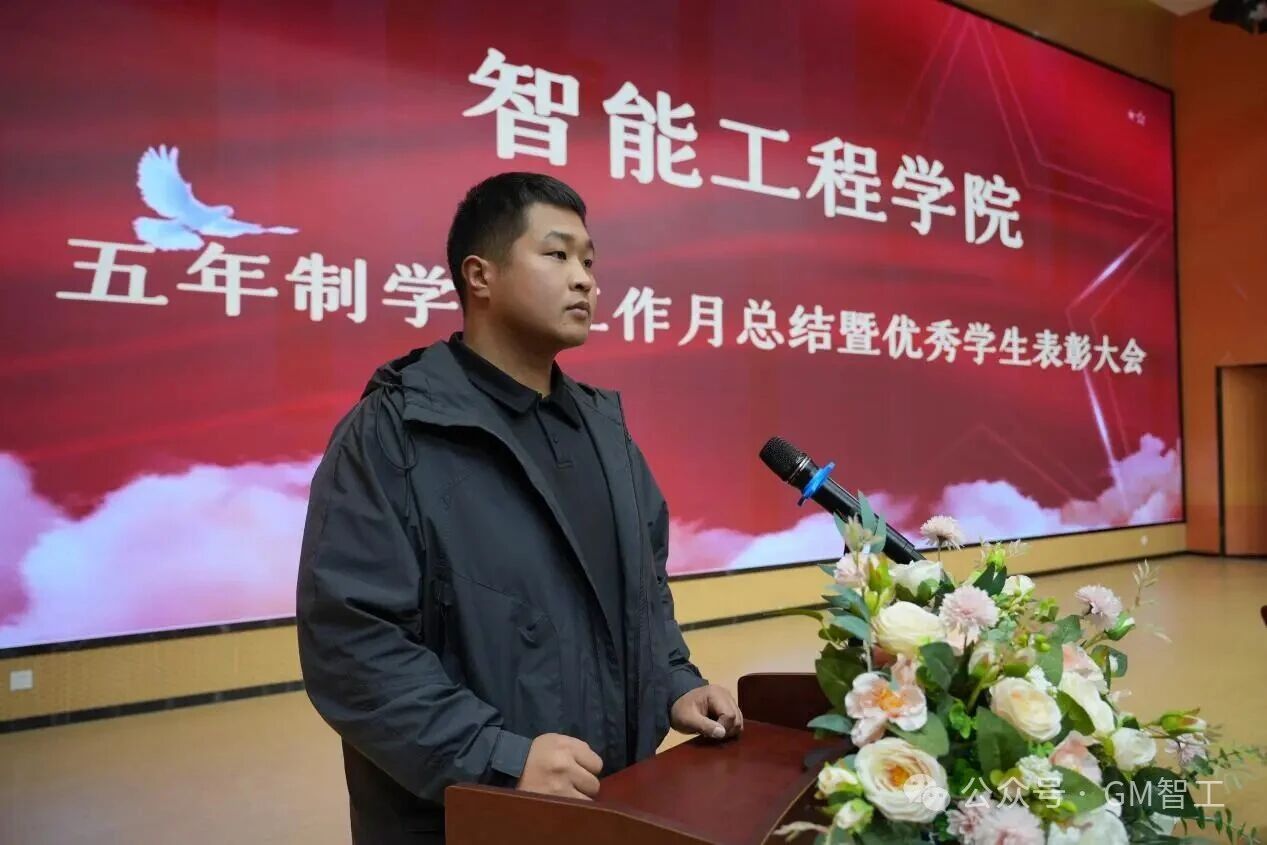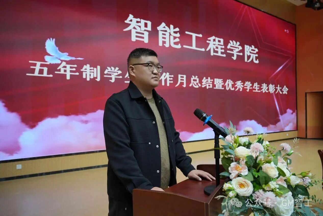 最后,赵科宁副校长在智能工程学院表彰会上,肯定学院成绩,表达祝贺与感谢,谈会议感触并提出三点建议,期望学生进步成长。