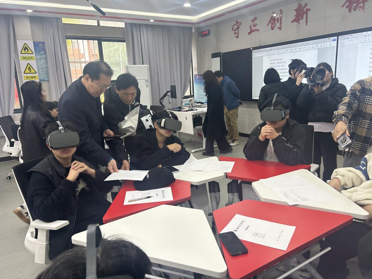 在黄河交通学院马院的思政课虚拟仿真实训室、微格教室,教师们走入教室,利用课间时间与师生深入交流;向授课教师详细了解虚拟仿真教学系统的使用方法、操作流程及应用场景,重点学习虚拟仿真技术与思政课理论教学结合的具体方法,还现场观摩了虚拟仿真教学演示,并就课程设计、教学效果评估等问题与授课教师展开即时交流,初步掌握了运用虚拟仿真技术开展思政课实践教学的基本方法等。