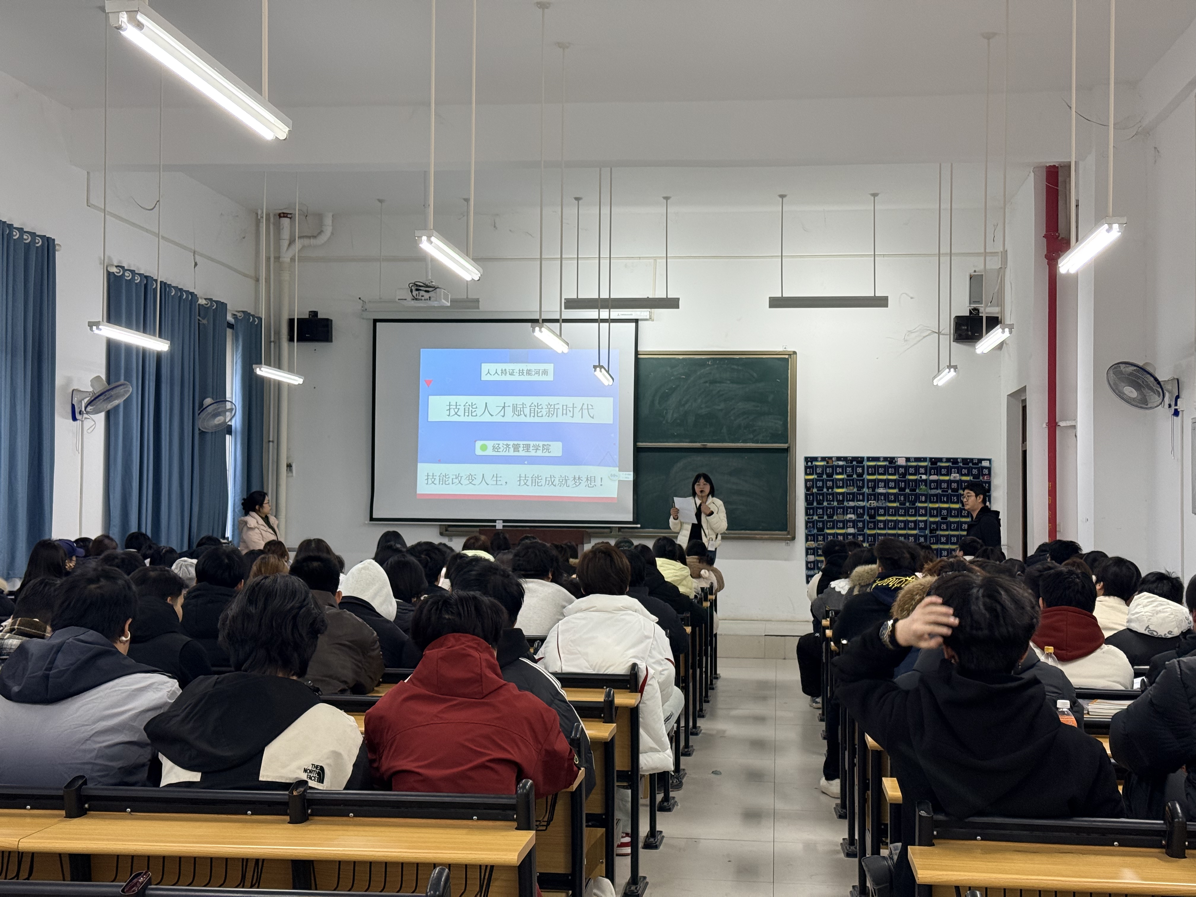 2025 年 11 月 24 日,焦作工贸职业学院经济管理学院为大一新生隆重举办课证融通专题报告。报告以 “人人持证・技能河南” 为核心导向,紧扣国家职业教育改革政策,为新生系统解读技能证书与专业学习、职业发展的深度关联,助力新生明确学业方向、规划技能成长路径。