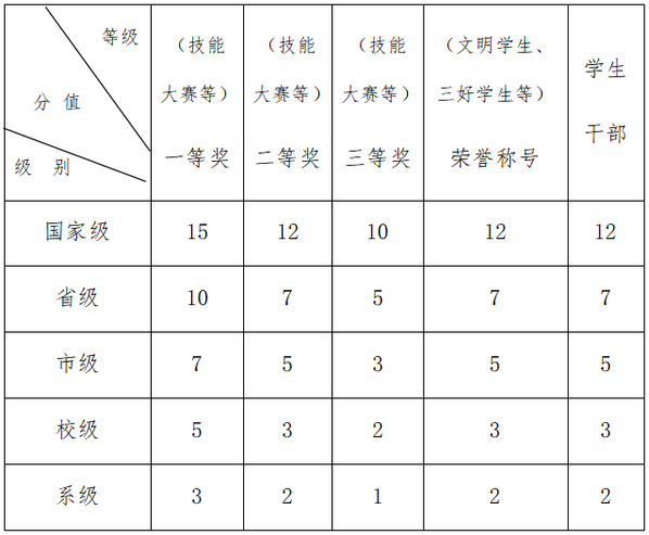 (二)学校设立一等奖学金、二等奖学金、三等奖学金。各等级奖学金评定根据以下计分规则进行: