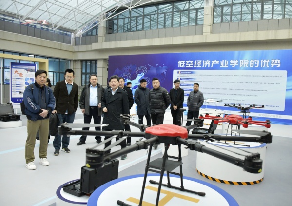 与会人员还参观考察了我校低空经济产业学院、华为ICT产业学院等,现场听取了我校低空经济产业学院建设和发展情况的介绍。