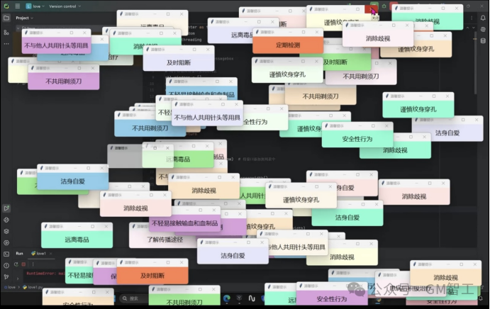 有的同学擅长C++或Java,他们编写程序,在控制台输出精心排版的防艾小贴士。当用户交互时,程序会随机显示“爱是万能键,但生命无Ctrl+Z”等结合计算机术语的创意口号,既幽默又发人深省。