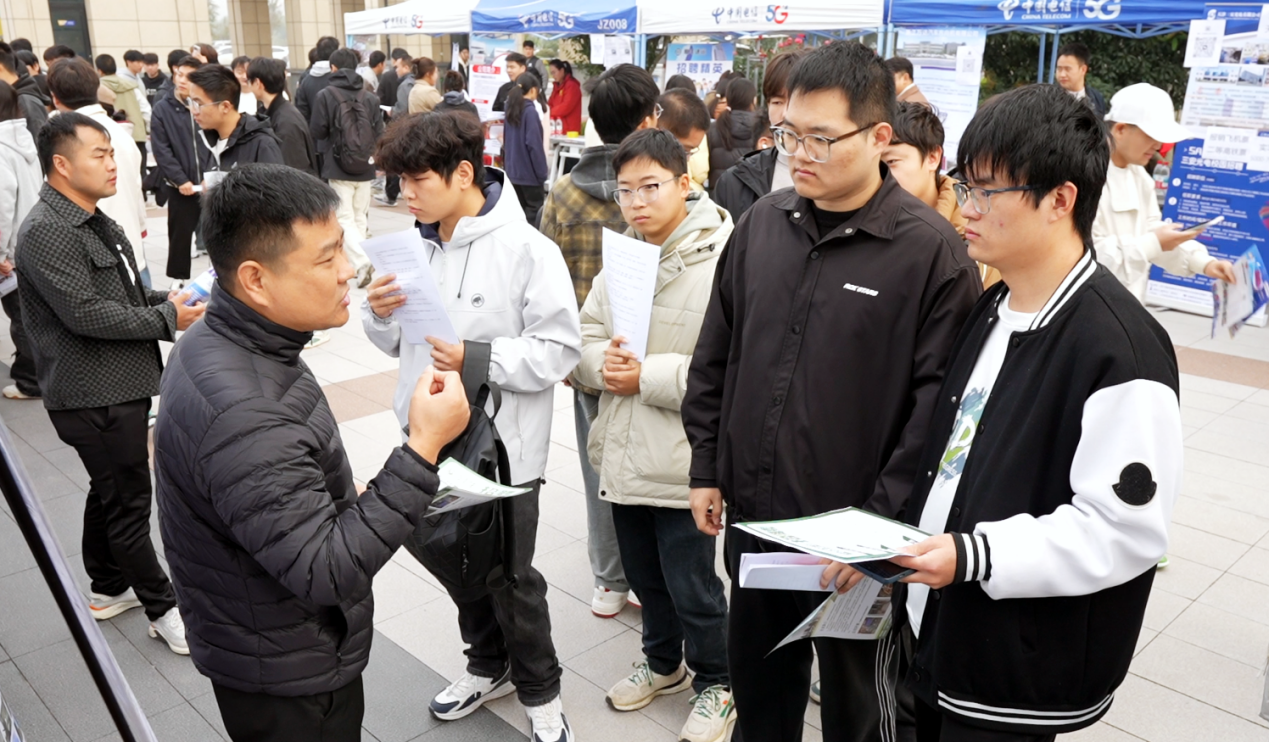 “大家别慌,记住看、听、问、递、进五字诀。”双选会现场,学校就业办、各院系负责人始终在人群中穿梭,为学生们现场支招、精细服务。