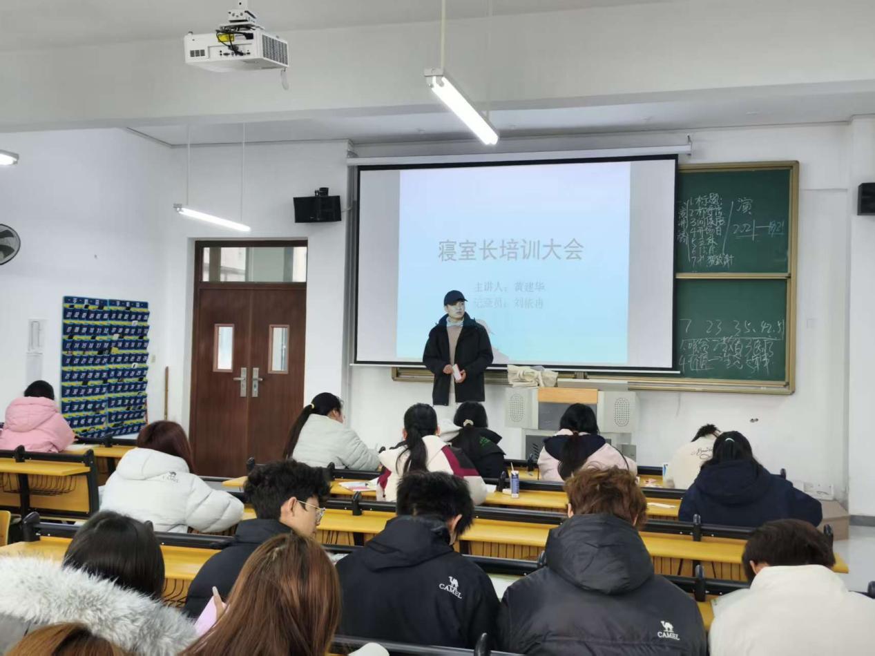 为进一步加强学生公寓管理,发挥寝室长在安全防控、文明建设、学风引领与信息沟通中的骨干作用,筑牢校园安全稳定“第一道防线”,2026年3月18日上午,数字创意设计学院在8213教室召开全院寝室长专题培训大会,黄建华老师主讲,各年级、各宿舍寝室长参加培训。