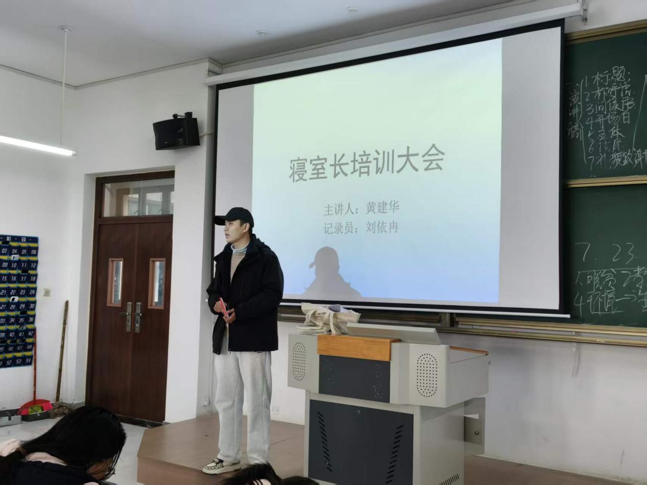 培训会上,黄建华老师围绕安全管理、职责定位、内务规范、人际沟通、应急处置、学风建设六大核心内容展开系统讲解。结合春季校园安全工作重点,重点强调宿舍用电安全、消防安全、防盗防诈、违禁品排查等要求,以案示警提醒寝室长严格落实“人走断电、离寝锁门”,坚决杜绝违规电器、私拉乱接、夜不归宿等行为,切实当好宿舍“安全监督员”。排查安全隐患,提醒大家要注意保持卫生,通风洁净,预防流感。检查严格按照宿舍“五严禁”“六干净、七整齐、八要八不准”的要求,及时整改,更好地保障宿舍的安全卫生,给同学们创造一个干净、整齐、安全又舒服的住宿环境。