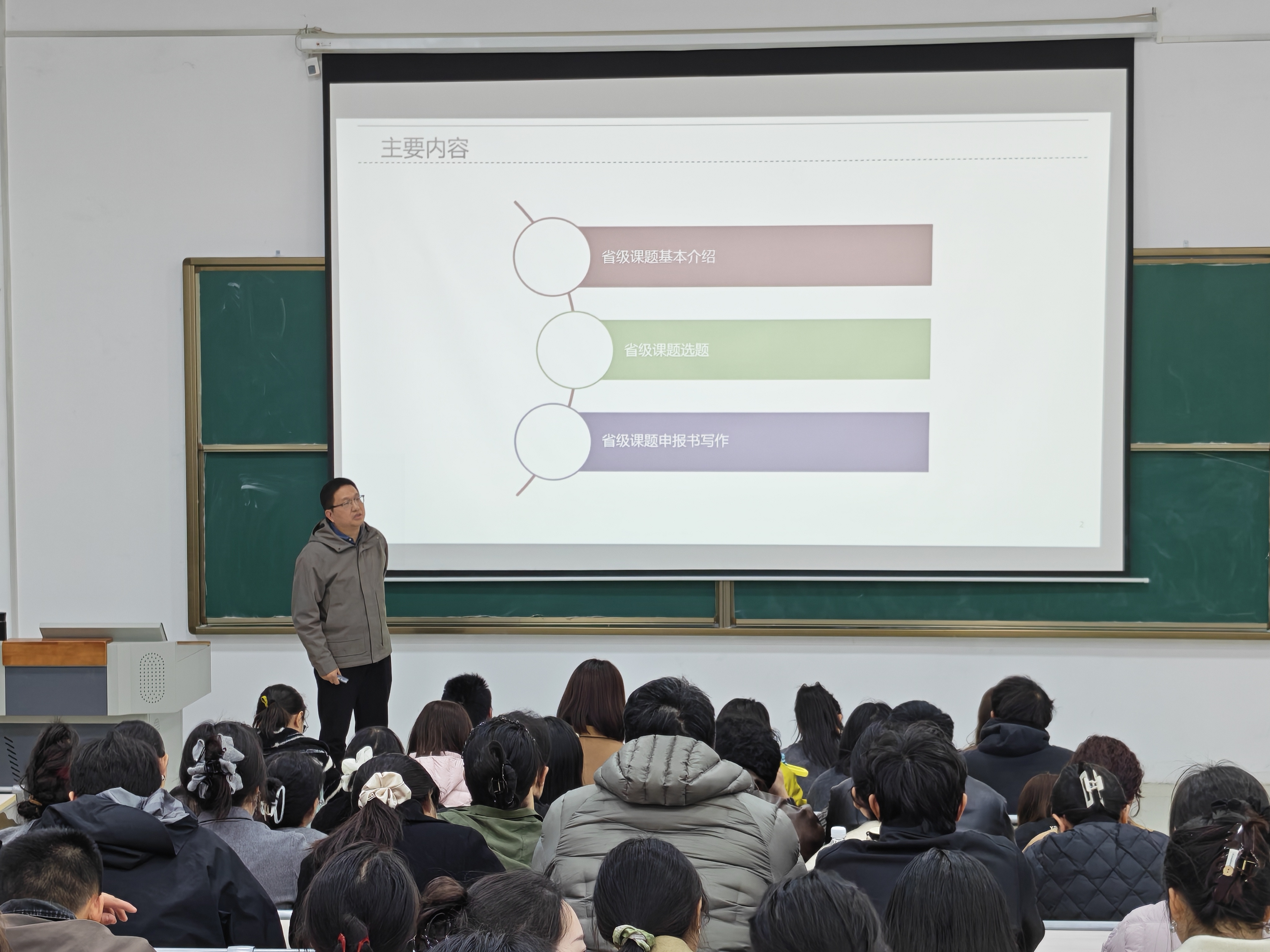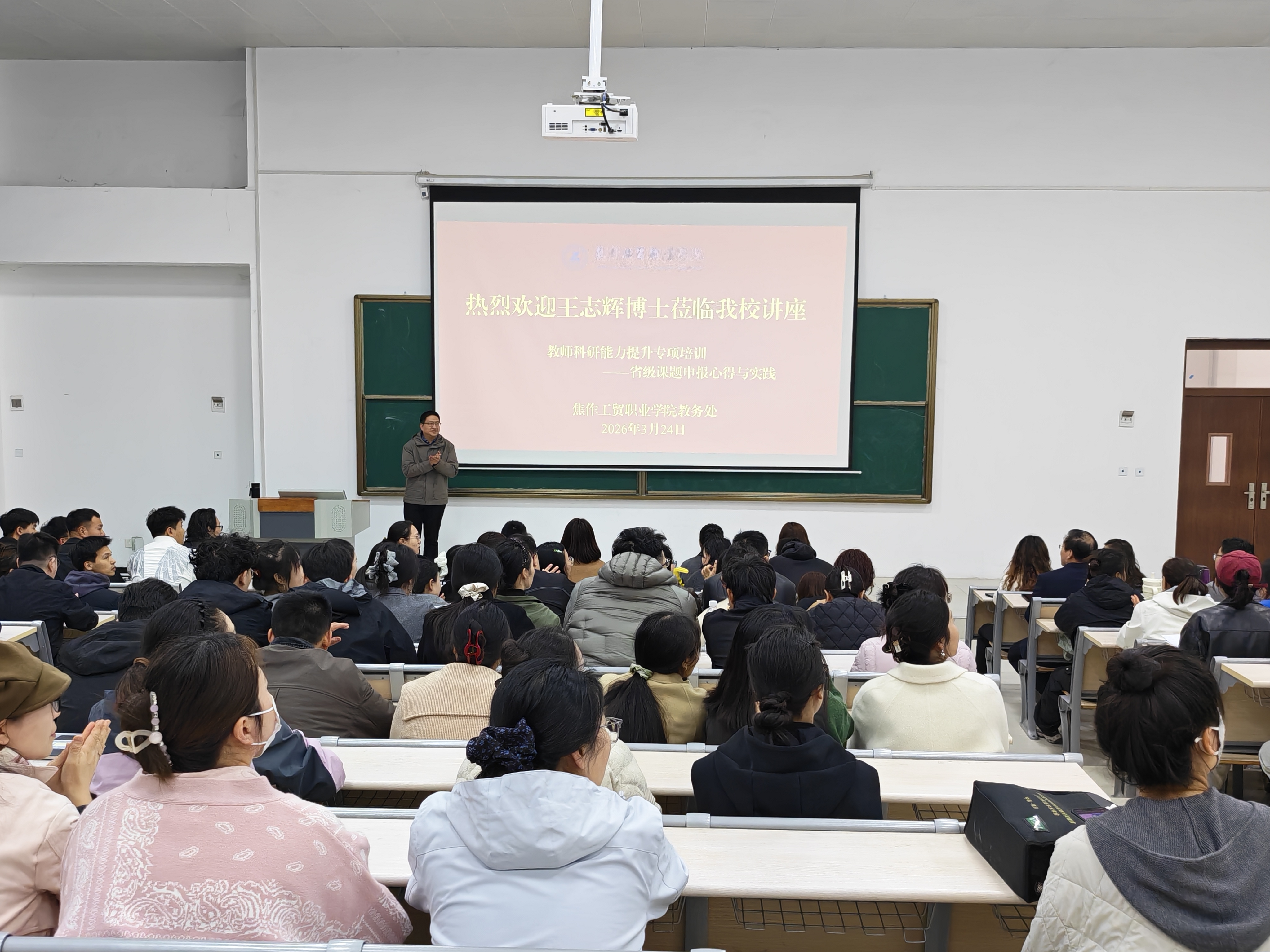 为进一步提升我校教师课题申报质量与科研创新能力,夯实科研功底,帮助教师精准把握申报要点、优化课题设计思路、攻克申报难点,2026 年 3 月 24 日,我校在山阳校区 6218 教室举办 “课题申报心得与实践” 专题讲座。全校专任教师、科研骨干、青年教师及有课题申报意向的教职工,通过线上线下相结合的方式参与本次专题学习。