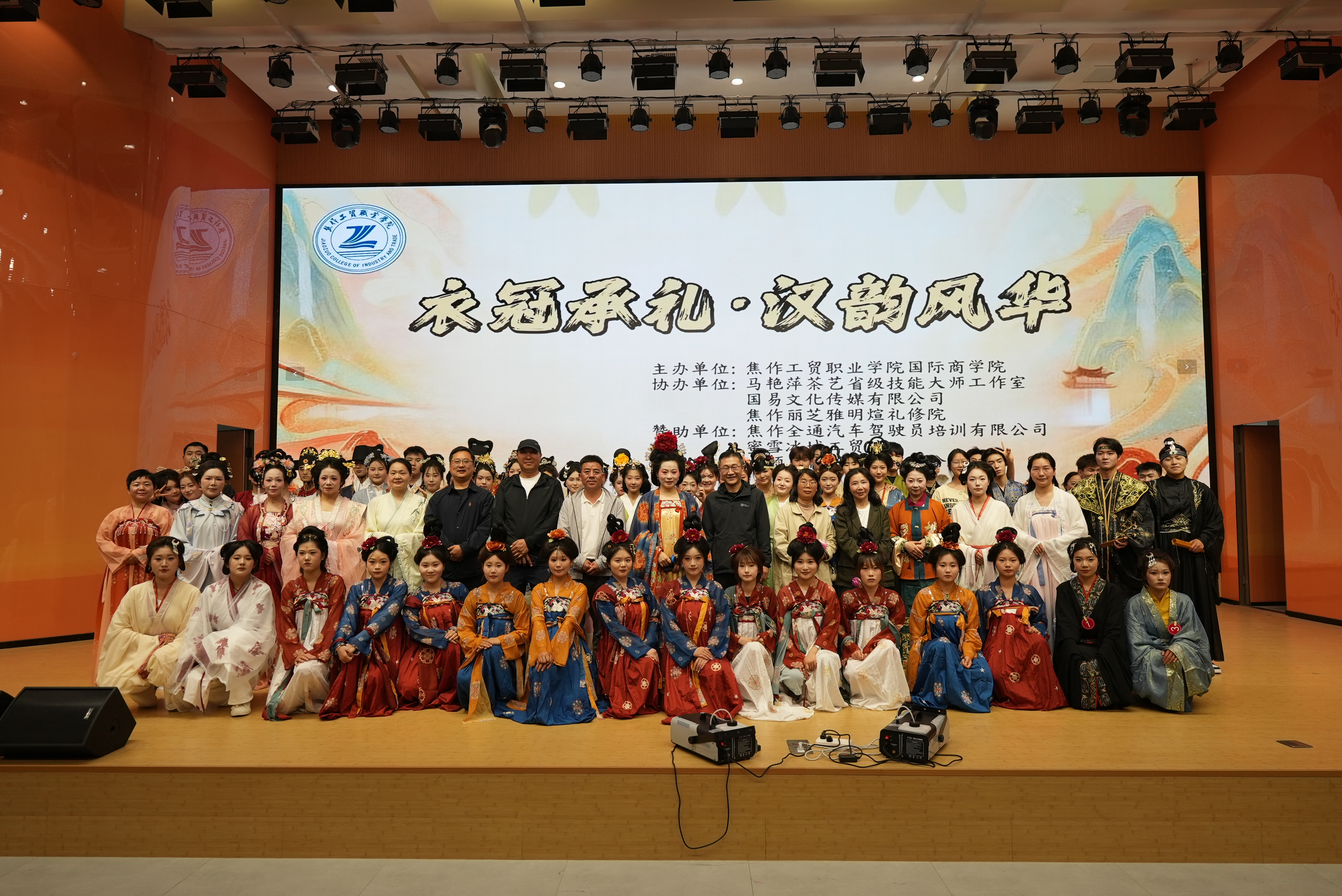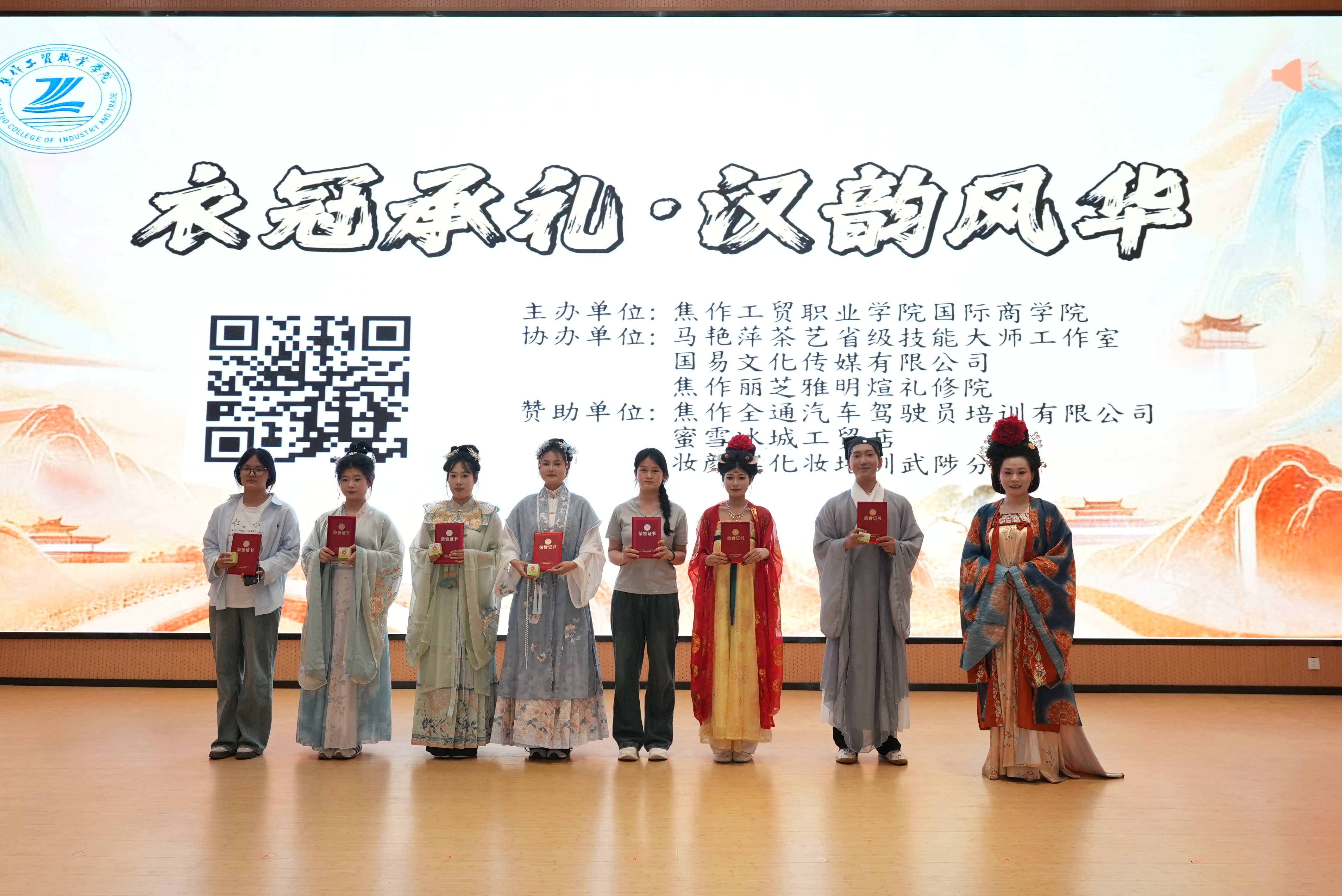 本次活动由国际商学院主办;马艳萍茶艺省级技能大师工作室、国易文化传媒有限公司、焦作丽芝雅明煊礼修院协办;焦作全通汽车驾驶员培训有限公司、蜜雪冰城工贸店、妆颜美化妆培训武陟分校等提供支持。