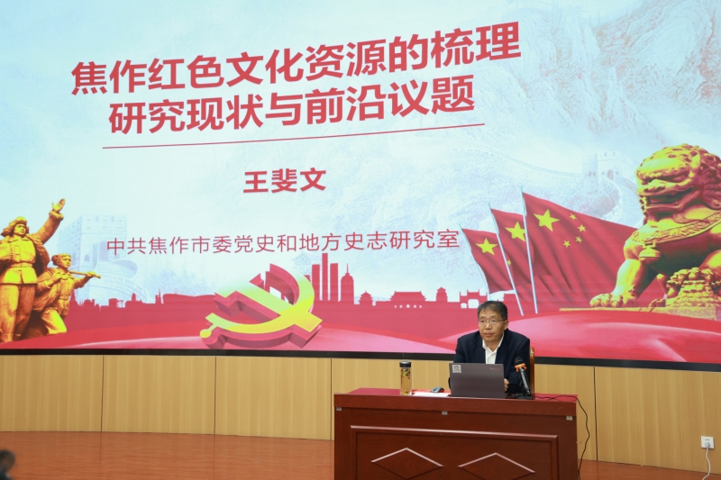 主旨报告环节,焦作市委党史和地方志研究室三级调研员王斐文以《焦作红色文化资源梳理、研究现状与前沿议题》为题,立足焦作深厚红色底蕴,以时间脉络与红色地标为线索,系统梳理新民主主义革命、社会主义革命和建设、改革开放和社会主义现代化建设新时期、中国特色社会主义新时代四个阶段的焦作红色文化资源。从福公司、西大井 1919 红色教育基地,到太行区第四专区及焦作党政军机关旧址、国家方志馆南水北调分馆,再到杨介人、武怀让、秦梦虎、宋学义等革命先烈事迹,全面展现焦作红色城市的精神内核。报告深入分析当前焦作红色文化研究现状,围绕史料求证、资源活化转化等提出前沿实操议题,为红色文化融入思政教育提供理论支撑。
