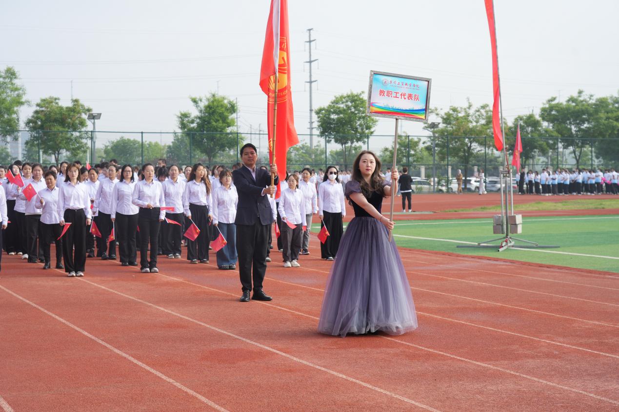 竞技攀高峰,逐梦向未来。4月22日,为期两天的焦作工贸职业学院第16届田径运动会盛大开幕!旌旗猎猎间,千余名运动员集结,14项赛事蓄势待发;彩练飞舞中,锣鼓敲出时代强音,龙狮舞动全场激情;大型表演里,一张张年轻脸庞写满自信,共同演绎拼搏大片、燃动青春洒脱。校党委书记徐亚东、校长吕全建及党政班子成员同两万多名师生出席。