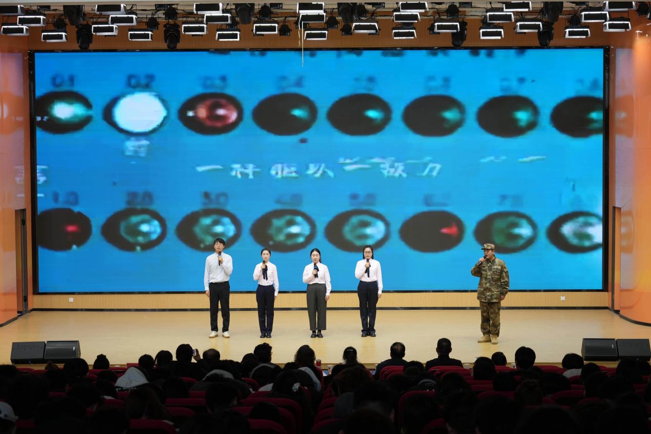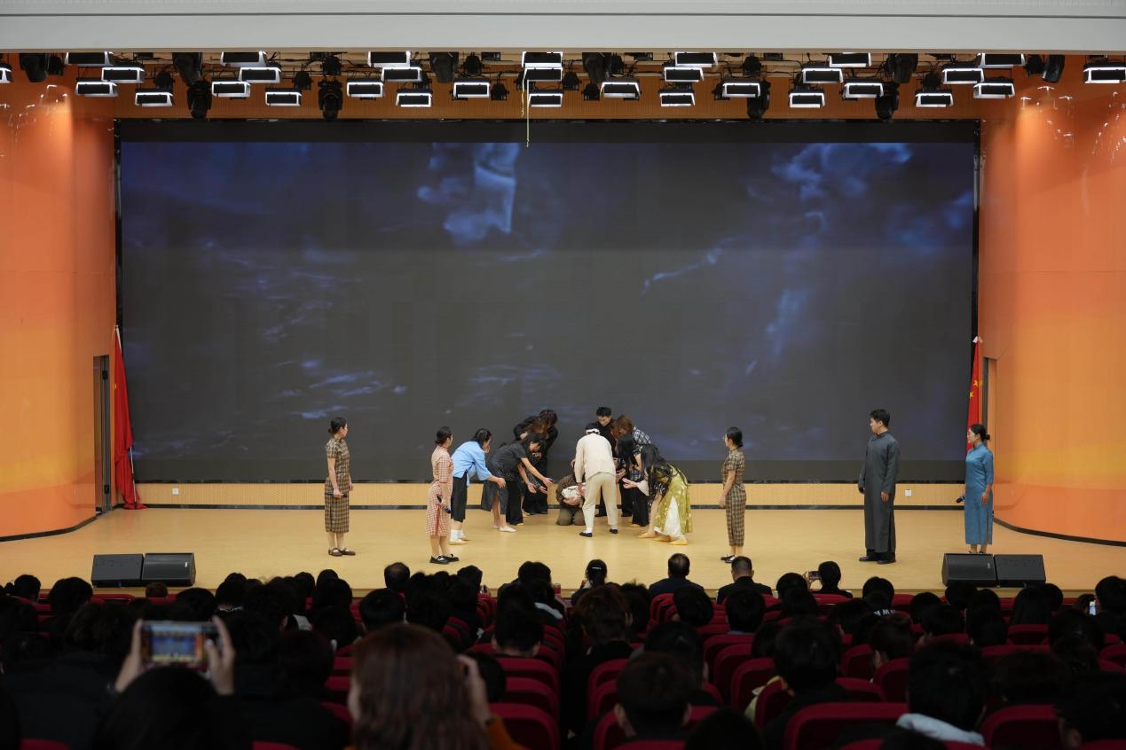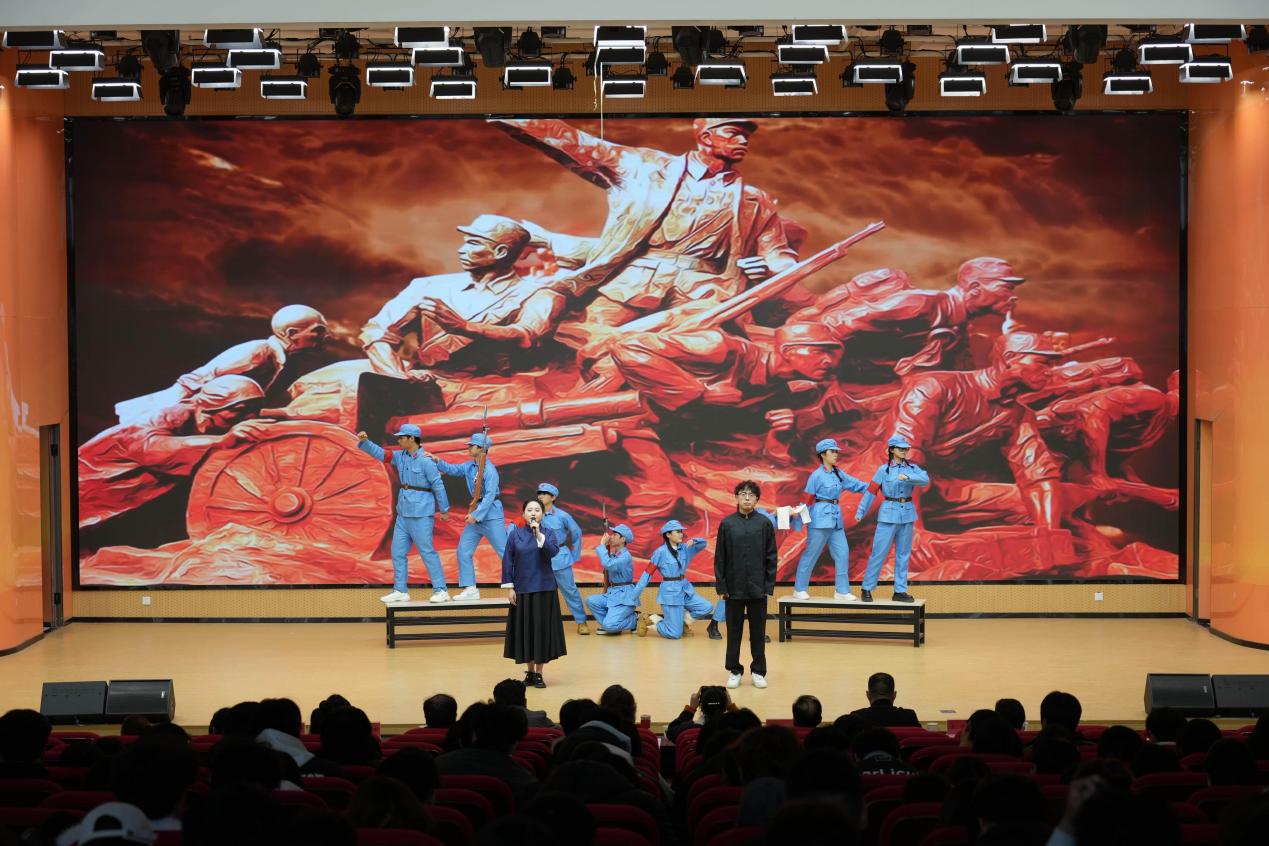 决赛现场,智能工程学院学生的《舞龙舞狮》表演拉开帷幕。各参赛队伍通过脱稿诵读、情景再现等形式演绎经典,《一束明亮的光》《红船载梦山河如愿》等作品深情回顾党的奋斗历程。《南京南京》以震撼人心的叙事唤醒历史记忆,而《可爱的中国》联袂展演则从多维度诠释家国情怀。艺术传媒学院党支部的《红铁》通过舞台剧形式展现革命精神,智能工程学院的《青春跟党走》彰显青年担当。
