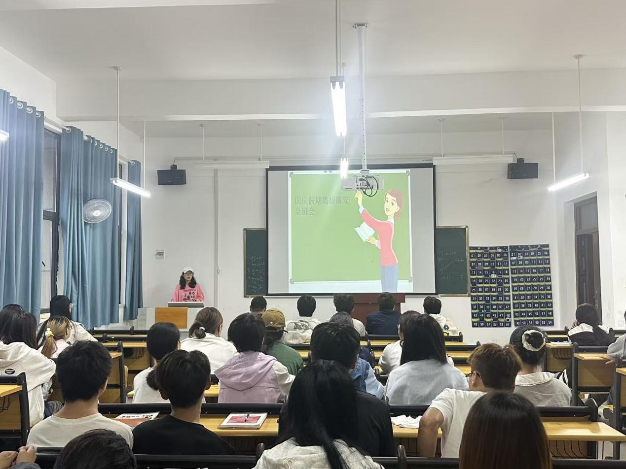 此次安全主题班会围绕 “安全离校、平安度假、顺利返校” 的核心目标展开,各班级结合学生实际情况,从多维度、多场景开展安全警示教育。班会上,辅导员与班主任首先向学生传达了学校关于国庆假期的安排通知,强调所有离校学生需详细报备目的地、交通方式、同行人员及联系方式,确保行程轨迹可追溯。