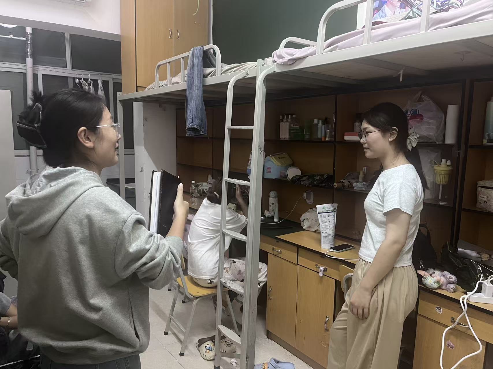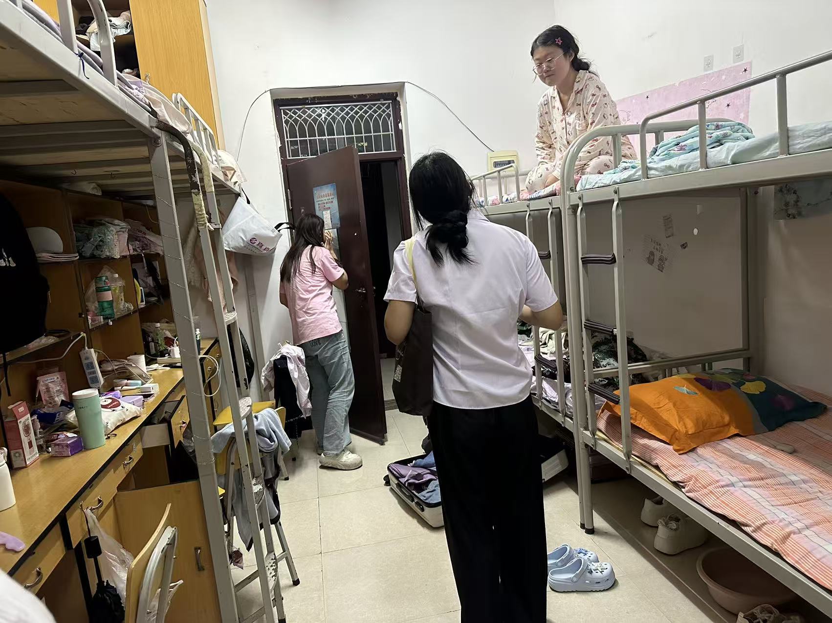 辅导员与任课教师们也纷纷发挥“贴心人”作用,有的指导大家合理规划衣柜与桌面空间,让宿舍布局更整洁有序,有的分享校园生活小贴士,从教学楼分布到食堂特色窗口,全方位为新生提供指引。宿舍内欢声笑语不断,师生间的交流其乐融融,新生们脸上洋溢着对大学生活的期待,也切实感受到了国际商学院大家庭的温暖。
