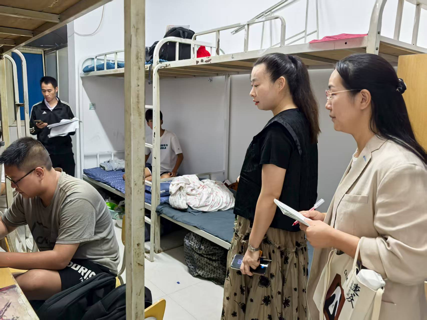 晚上,国际商学院马艳萍院长、教学副院长靳迎利、学工副院长刘坤带领国际商学院全体辅导员及任课教师组成专项查寝小组,深入新生宿舍开展走访慰问,用细致关怀为新生开启大学新生活注入温暖力量。