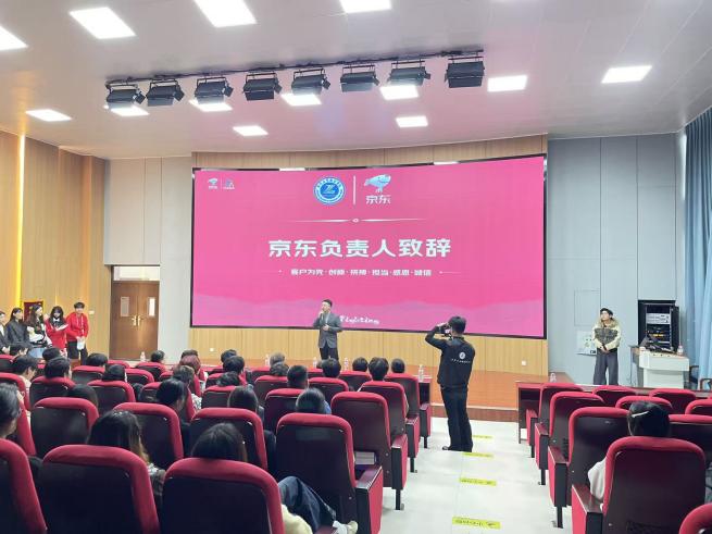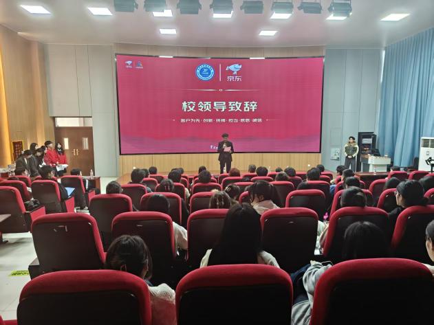 侯继红校长在致辞中指出,学校始终将“产教融合、校企合作”作为人才培养的核心路径,而与京东的合作正是这一理念的生动实践。“京东秉持的‘客户为先、创新、拼搏、担当、感恩、诚信’价值观,与我校‘育人为本、德技并修’的办学理念高度契合。”侯校长强调,此次双方携手备战双十一,既是对前期合作成果的检验,更是深化产教融合的新起点,希望同学们以企业需求为导向,在实战中锤炼技能,实现“学有所成、学以致用”。