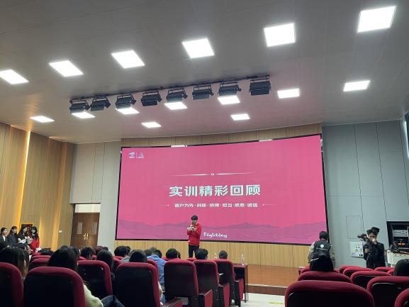 国际商学院马艳萍院长介绍了合作育人成果,学院将紧扣实际岗位需求开设特色课程,她表示:“双十一是一个难得的实战机会,学生们在实践中能够快速成长。我们希望通过这样的活动,让学生们更好地理解电商行业的运作模式,为未来的职业发展打下坚实的基础。”学生汪畅、李鹏程和郭依铭分别作为代表发言,分享了实训服务经验,表示将带领团队以高标准服务助力攻坚。大会还表彰了实训优秀者:侯竞菲获“在线服务之星”,汪畅获“电话服务之星”,杨能能获“事满服务之星”,陈昊威等5人获“拼搏之星”,王轩等5人获“优秀TL(组长)”称号。