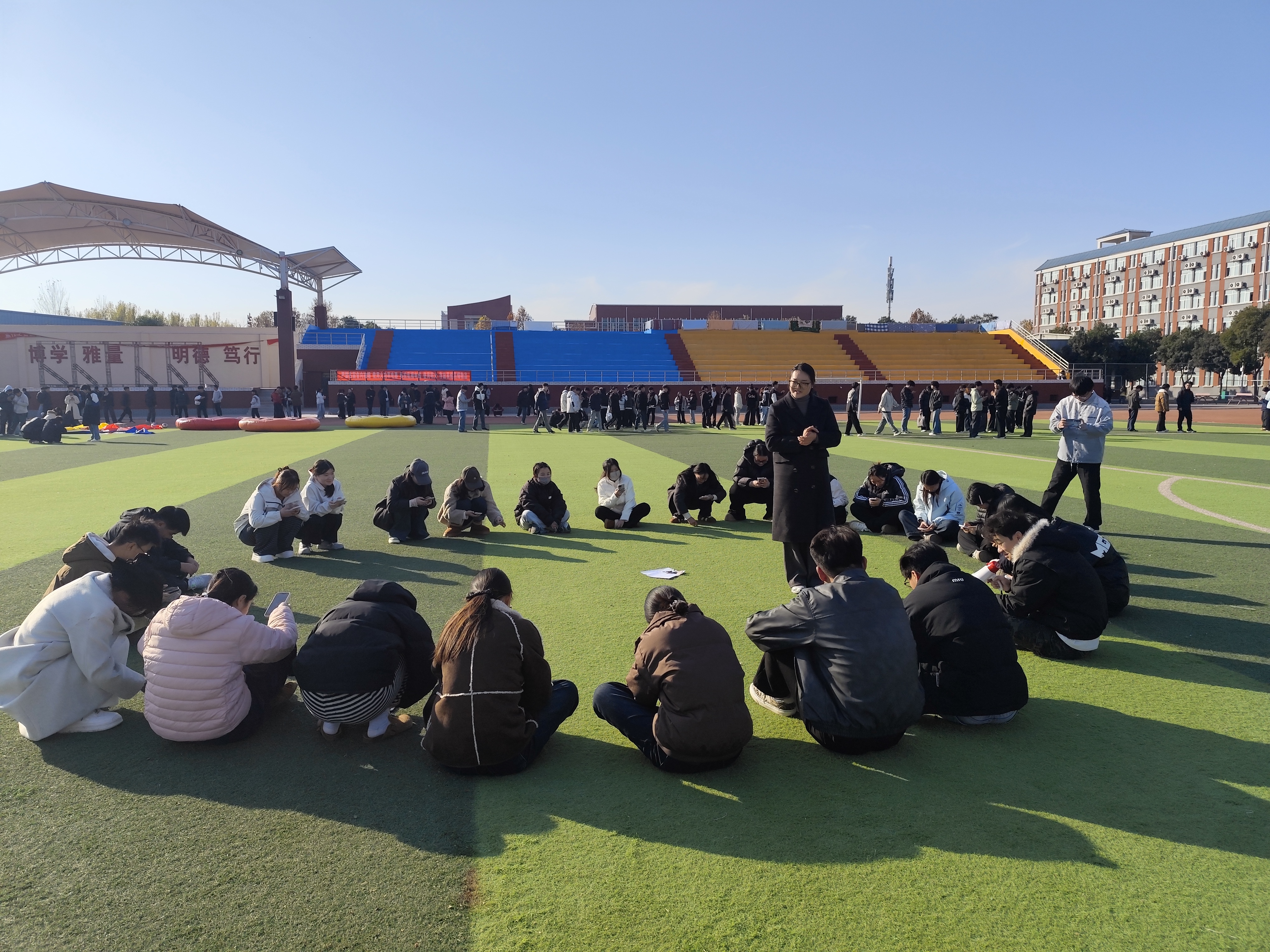 活动在心理专员刘洁老师、大一新生辅导员贾春辉老师、孙志远老师、以及王晨静老师的带领下于我校足球场举行,以一个自然班为单位开展。在“关闭手机、全心投入”的原则下,同学们围坐成圈,开启了这场心灵与情感的交流之旅。