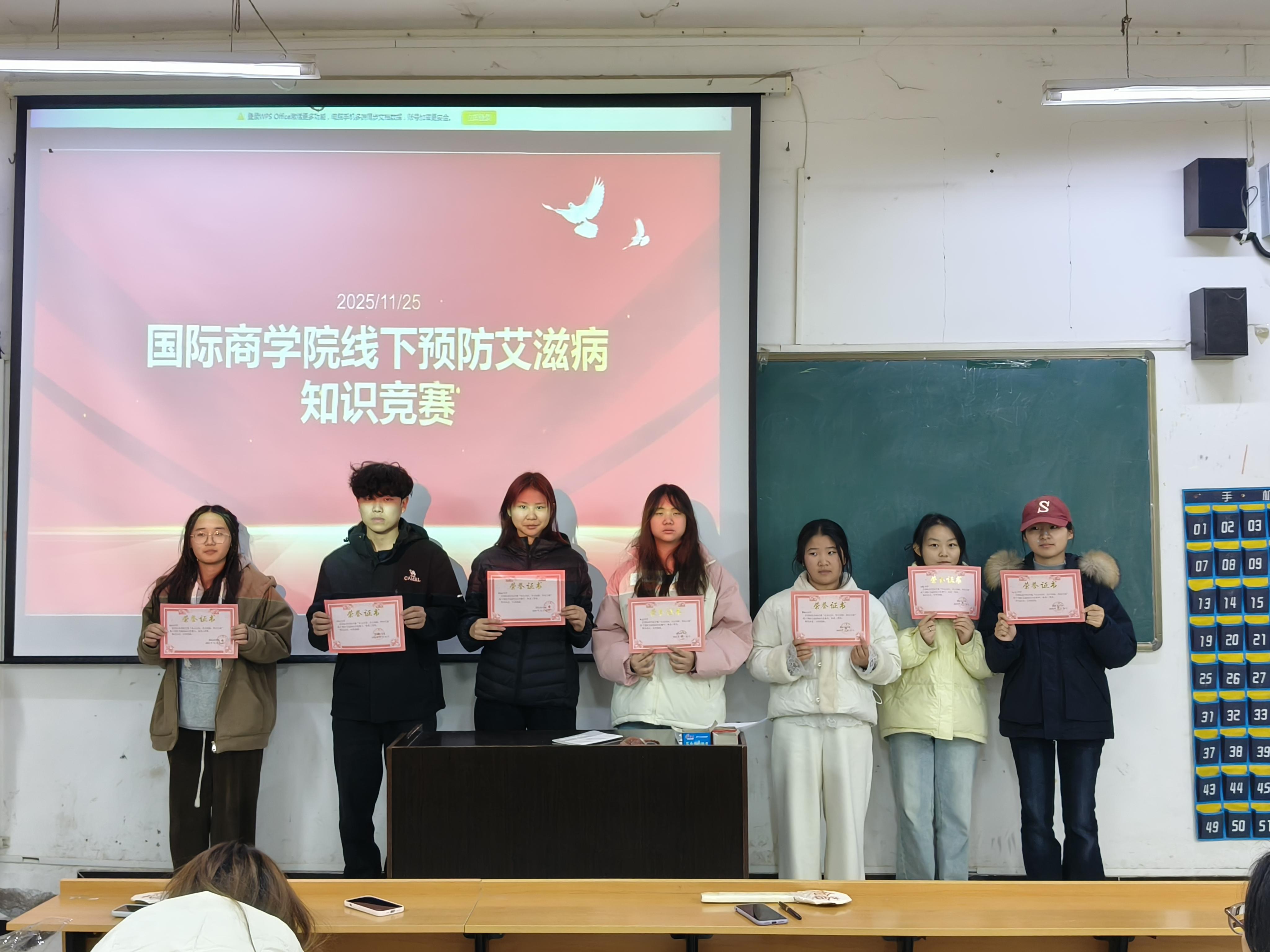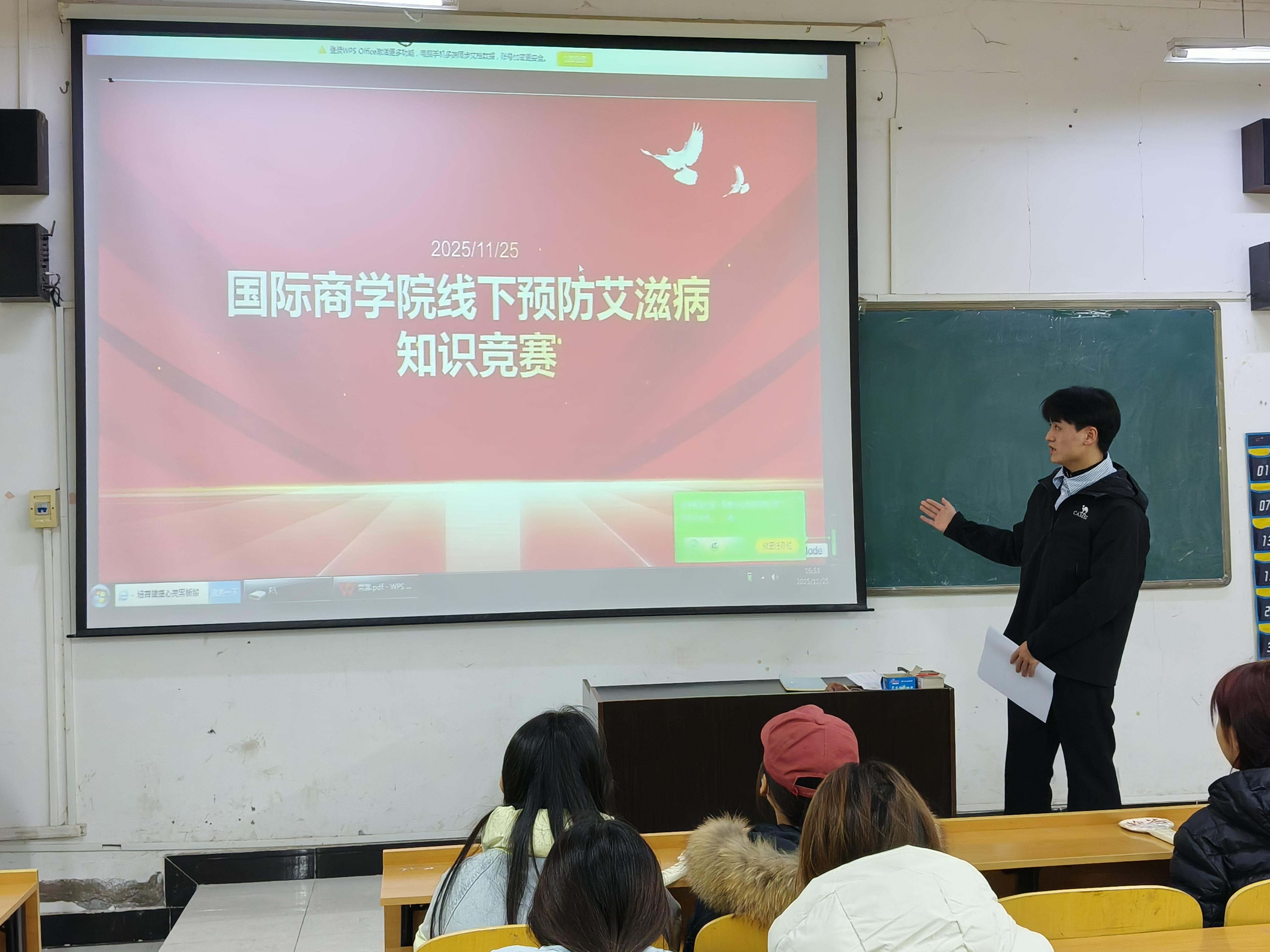 为了普及艾滋病防治知识,提高大学生的健康意识和自我保护能力,营造积极参与艾滋病防治工作的良好校园氛围,国际商学院于2025年11月25日下午3点在博学楼203教室成功举办了面向大一新生的预防艾滋病知识竞赛活动。