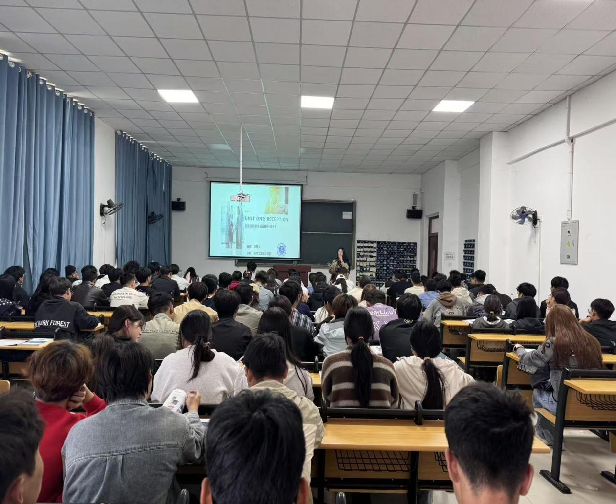 为进一步提升我院英语教学质量,探索高效且生动的课堂教学模式,2025年10月13日第5节课,我校优秀英语教师李慧文在6507教室成功开展了一堂以《创新高职英语基础教程・综合 1》Unitone: reception为主题的公开课。本次课程聚焦商务接待场景,旨在提升学生职场英语应用能力,我院无课教师到场观摩学习,共同感受优质课堂的魅力。