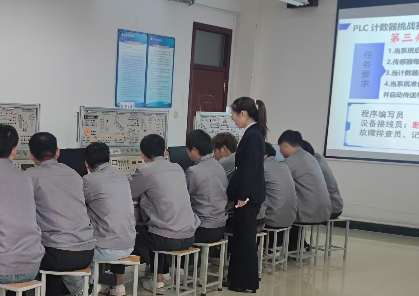 在PLC实训教室,传统的技能练习被一场紧张的“PLC计数器挑战赛”取代。教师将“系统启动、传感器检测”等核心知识点设计成竞赛关卡,让学生们在组队闯关中完成编程、接线与调试。这套“以赛促学”的打法,极大地激发了学生的好胜心与求知欲,使他们在实践中深化理解,在协作中锻炼能力。