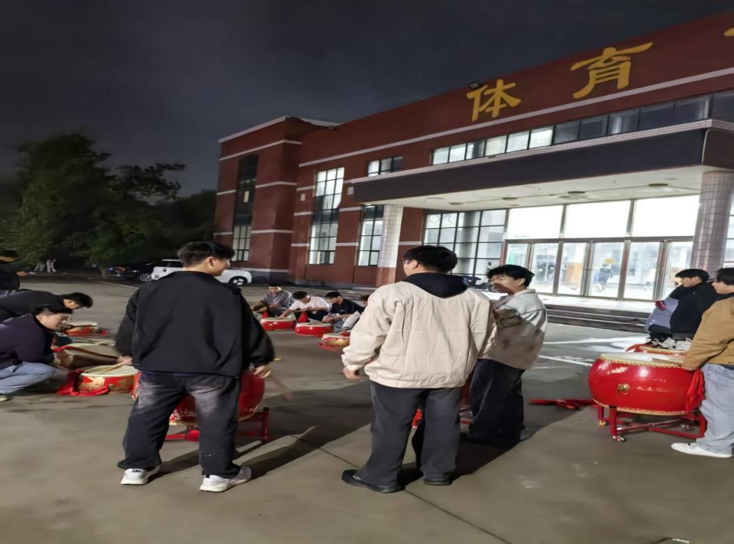 为呈现优质表演,打鼓队提前两周开启密集训练。队员们主动协调课业与训练时间,每日傍晚齐聚实训楼旁空地刻苦练习。队长牵头制订计划,从鼓点节奏把控到队形衔接,每处细节都严格要求;针对新队员节奏感不足的问题,老队员一对一指导,纠正鼓槌握持与敲击力度。降温天气里,大家热情丝毫不减,汗水浸湿队服仍坚持训练,只为在美食节当天交出满意答卷。