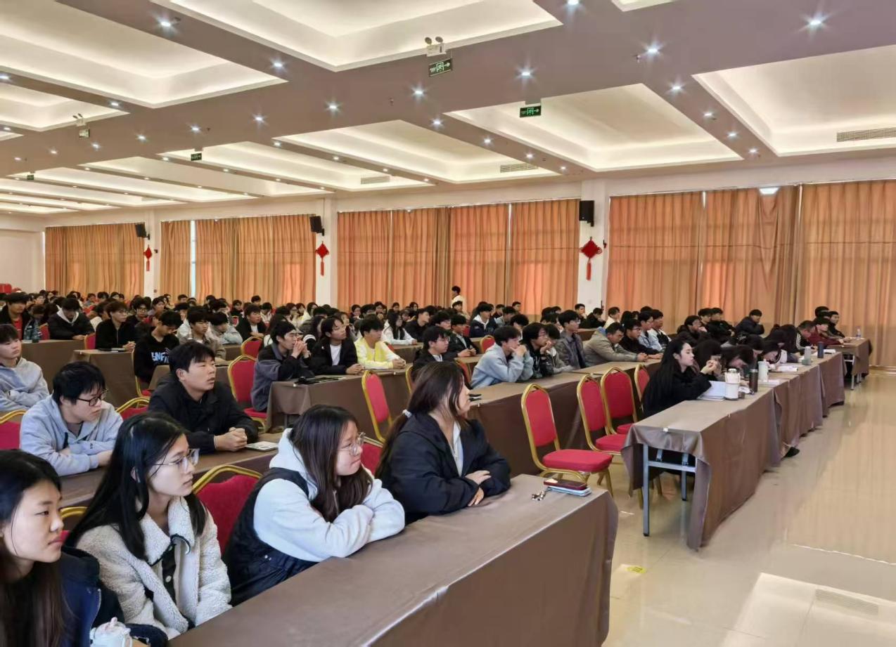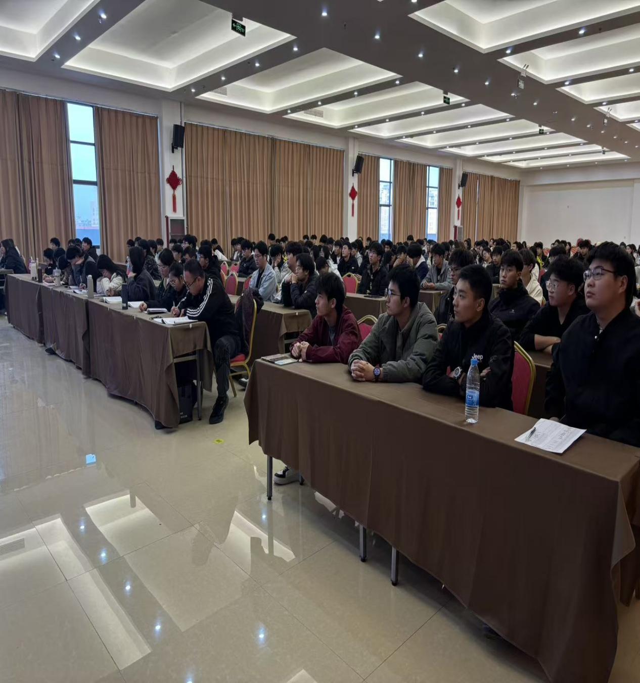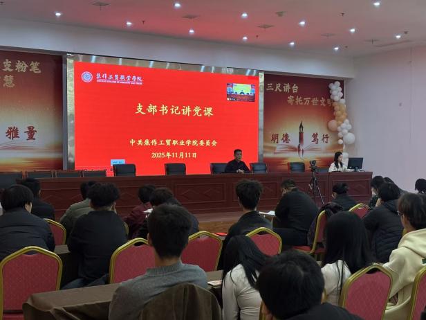 (本网讯)为推动党的二十届四中全会精神在校园落地生根,切实将理论学习成果转化为职业教育高质量发展的动力,2025年11月11日下午,焦作工贸职业学院举办专题党课。机电工程学院积极组织党员干部、全体教师及学生入党积极分子参加学习,与其他参会人员齐聚一堂,认真聆听马克思主义学院支部书记韩建国以“深入学习贯彻四中全会精神,持续推进中国式现代化建设”为主题的授课。