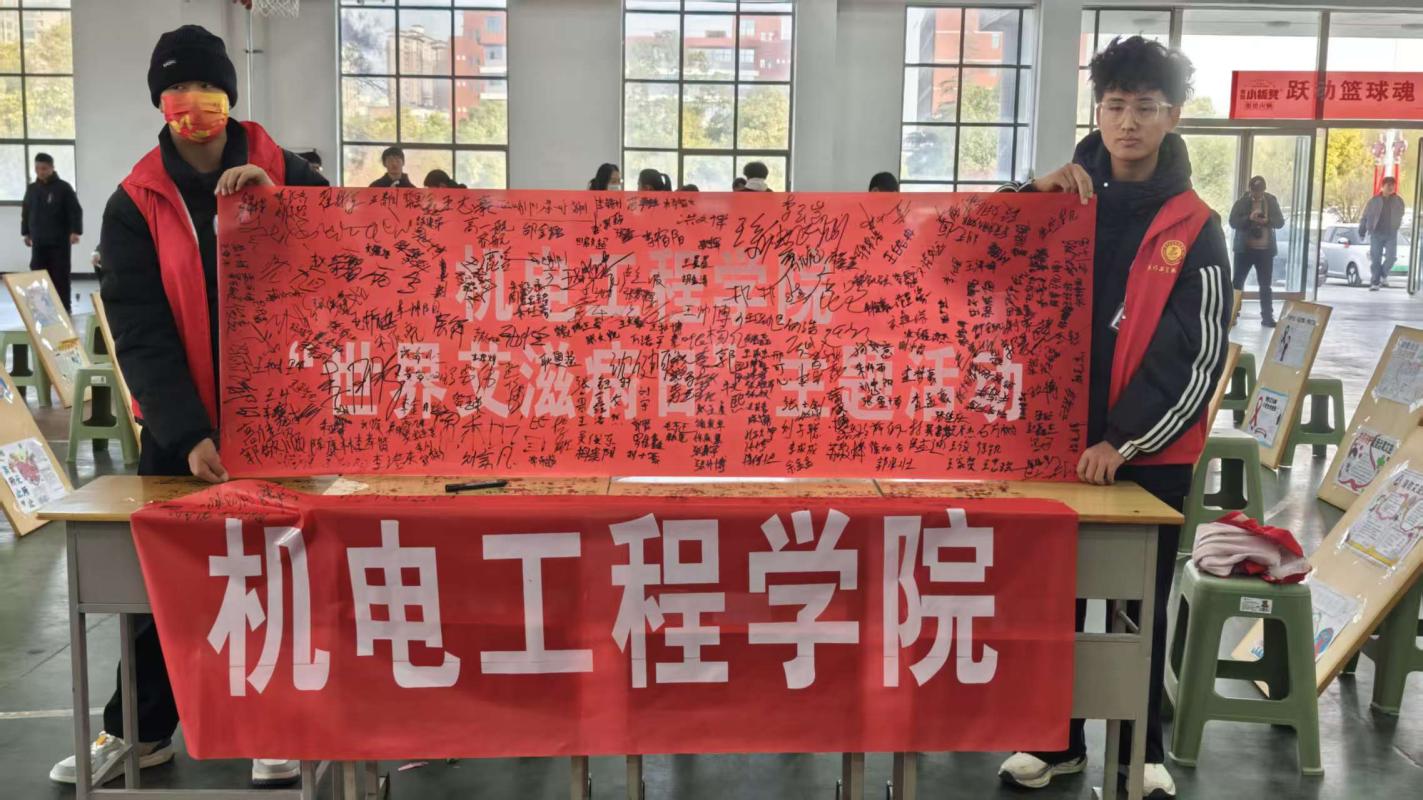 (本网讯)为进一步普及艾滋病防治知识,增强青年学生的健康意识和自我保护能力,营造积极参与艾滋病防治工作的良好氛围,11月27日,机电工程学院成功举办了以“携手防疫抗艾,共担健康责任”为主题的预防艾滋病宣传教育活动。学院领导、辅导员及近三百名学生代表参加了本次活动。