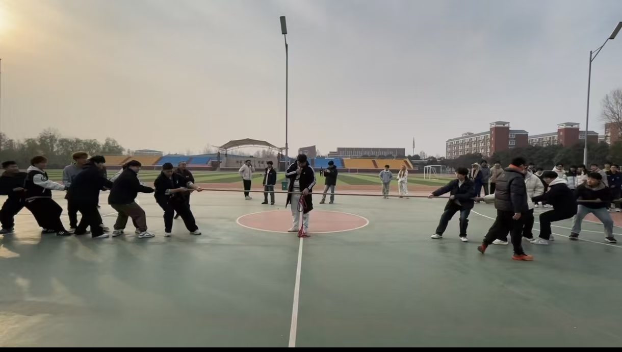 (本网讯)为丰富校园文化生态,锤炼学生强健体魄,厚植团队协作精神与集体荣誉感,12月9日下午,机电工程学院在学校篮球场成功举办五年制学生拔河比赛。各班级代表队身着统一队服,精神饱满、斗志昂扬,在赛场之上上演了一幕幕紧张激烈、扣人心弦的力量对决与青春交响。