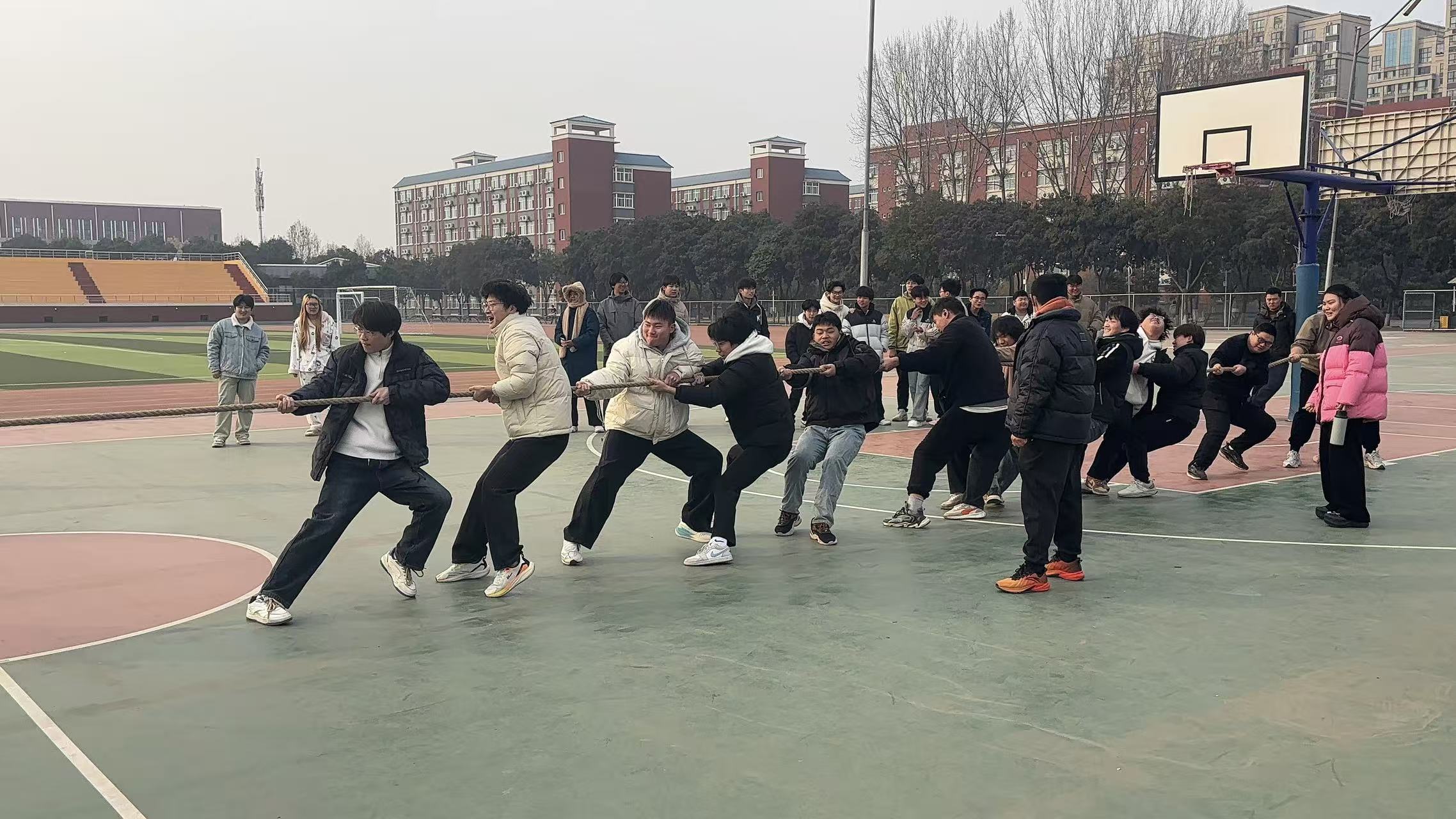 较量过程中,各代表队充分展现出高度的团队协作意识与顽强毅力。即便面对力量悬殊的局面,队员们依旧咬紧牙关、坚守阵地,用坚持诠释体育精神。场下啦啦队员们挥舞着班级旗帜,以饱满热情为选手呐喊助威,营造出热烈浓厚的竞技氛围。各班级辅导员也亲临现场督战,不仅为选手们加油鼓劲,更在关键局面对站位、发力节奏等给予精准战术指导,成为队员们最坚实的后盾。