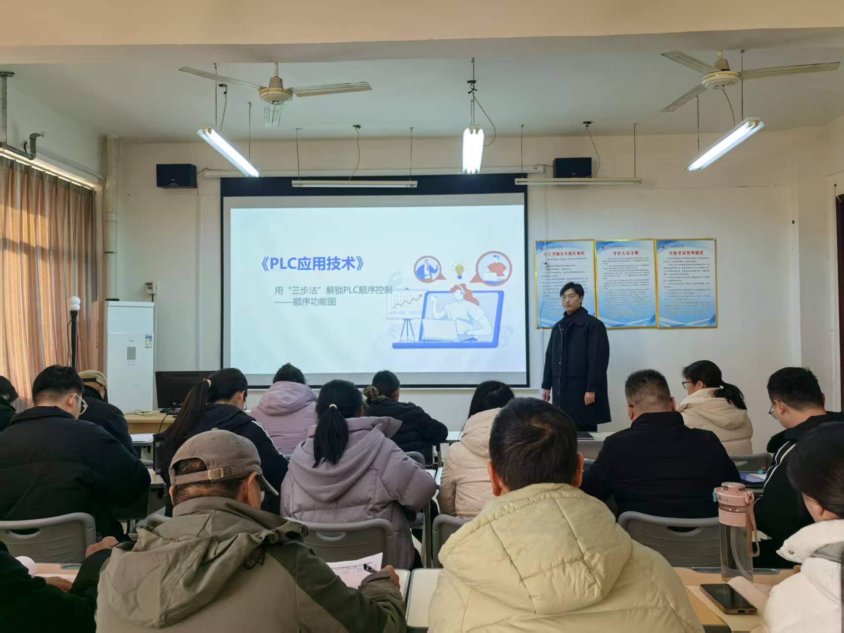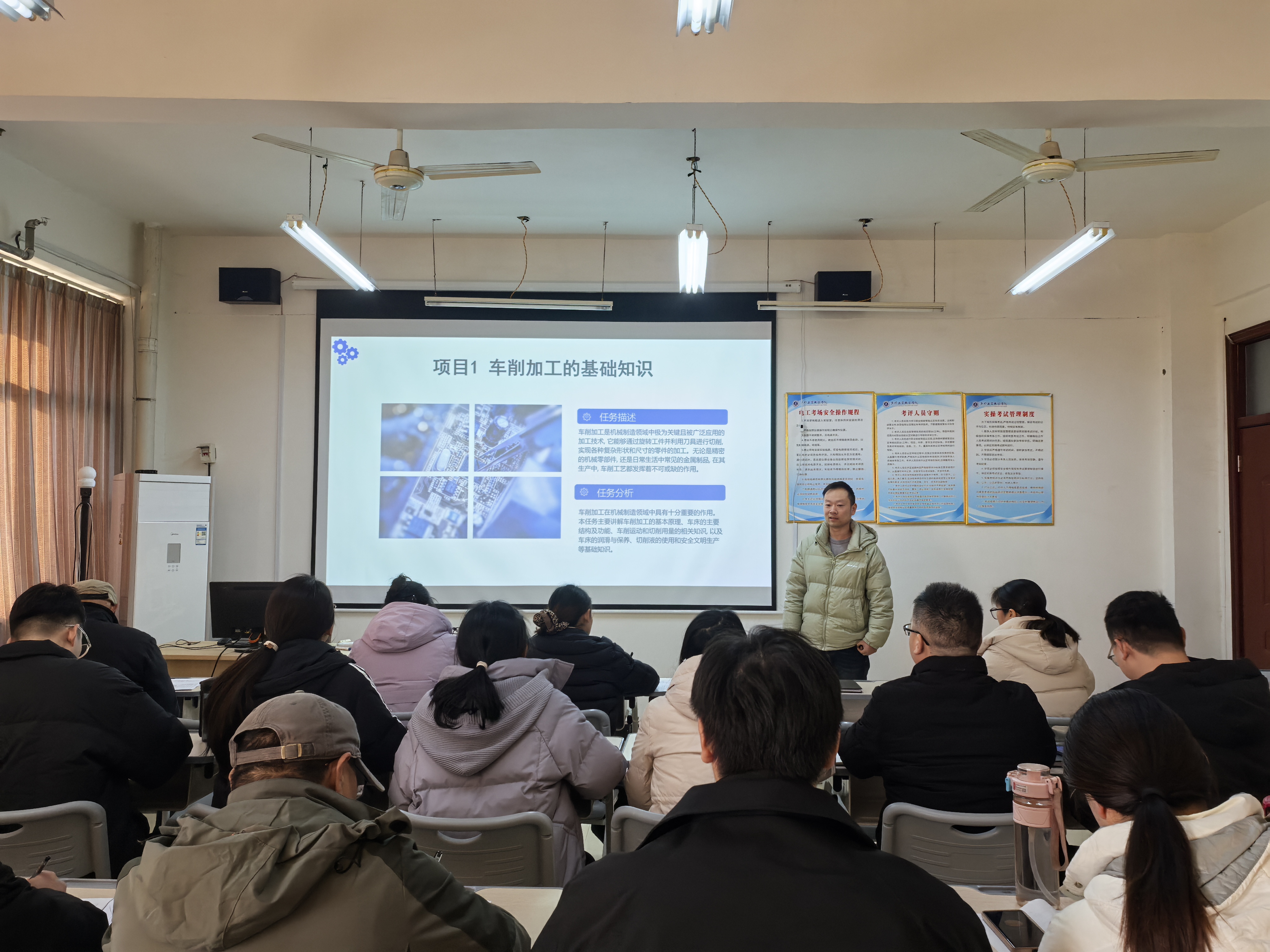 (本网讯)为进一步深化课堂教学改革,提升专业教师教学能力,促进优质教学经验交流共享,近日,机电工程学院组织全体教师开展公开课观摩活动。本次活动中,张亚杰老师、李晓峰老师分别以“车工技能”“PLC应用技术”为主题开展授课,全体教师齐聚课堂,沉浸式参与教学观摩,课后共同参与研讨交流。