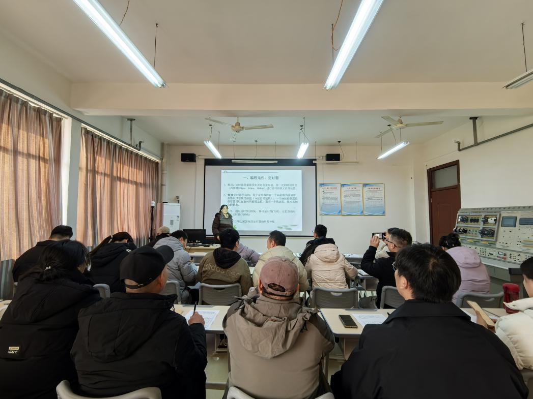 12月16日下午,由宋丹老师进行维修电工核心技能培训——定时器编程,系统梳理定时器工作原理、编程逻辑及常见应用场景,结合工业生产实例拆解编程步骤,从参数设置、程序编写到设备调试,层层递进、深入浅出,针对定时器编程中的易错点、难点逐一指导,教师们分组实操练习,互帮互助、查漏补缺,沉浸式掌握编程技巧与故障排查方法,切实提升实操应用能力。