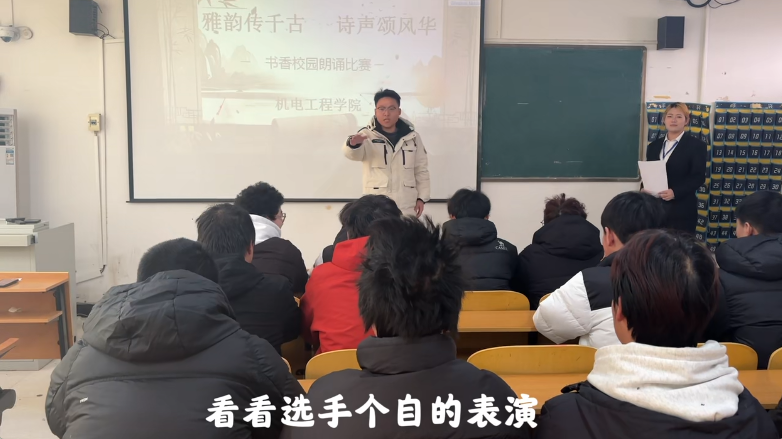 据悉,举行学生首届毛泽东诗词及中国传统文化诵读赛通过独诵、团队演绎等多样形式、搭配配乐与情景呈现,在激昂诗词中感悟伟人豪情与革命壮志,既展现了机电学子的人文素养,更以文化浸润厚植家国情怀,为校园增添浓厚书香与红色底蕴。