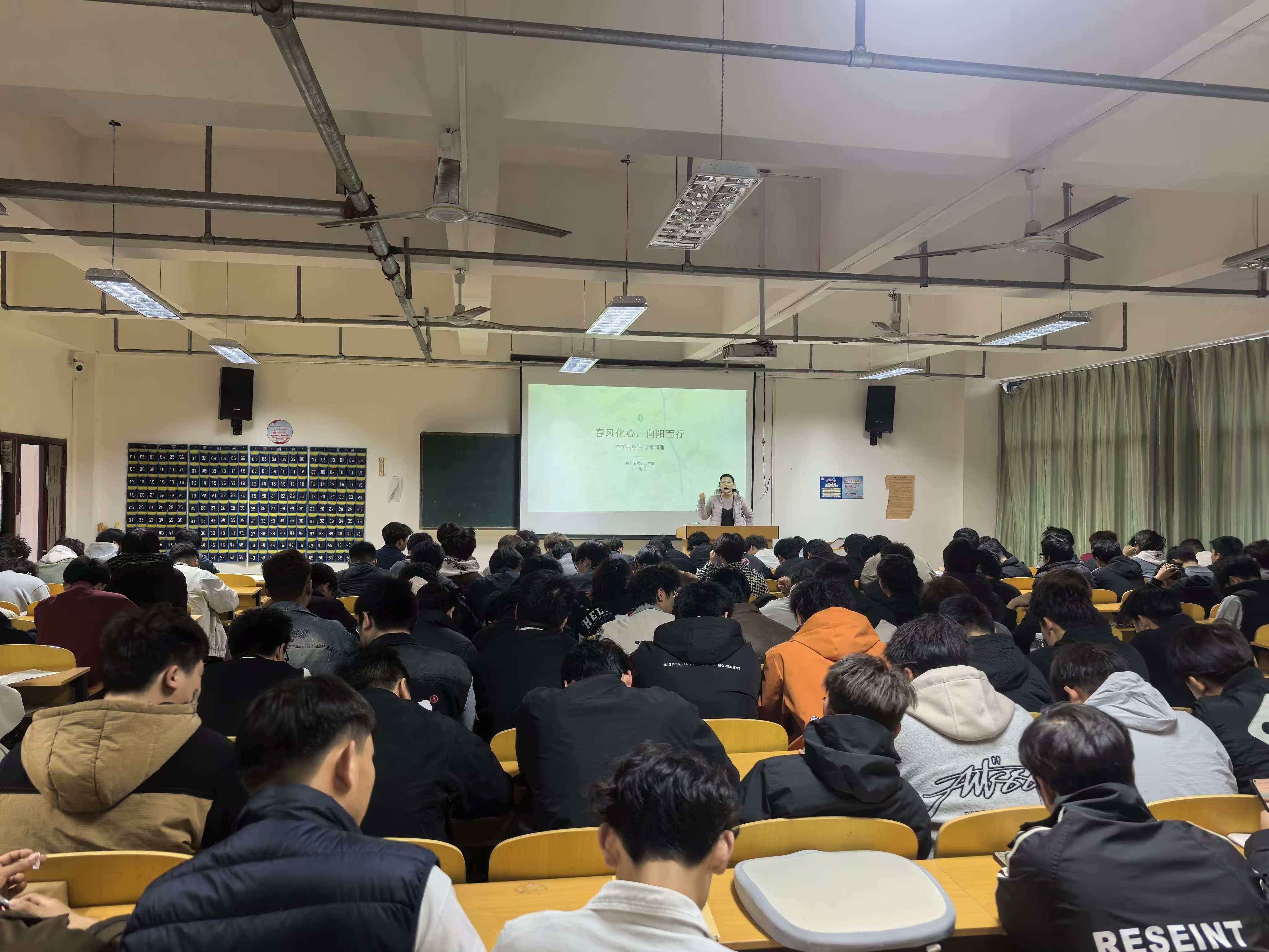(本网讯)为深入贯彻落实立德树人根本任务,扎实推进大学生心理健康教育与思想引领工作,丰富校园文化内涵,营造积极健康、向阳向善的校园育人氛围,近日,我学院以“春风向心,向阳而生”为主题,成功举办专题宣讲活动。本次活动由机械工程学院统筹策划,各专业辅导员精心组织、广泛动员,全校两千余名师生齐聚现场,共赴这场青春思想盛宴,活动现场秩序井然、氛围浓厚。