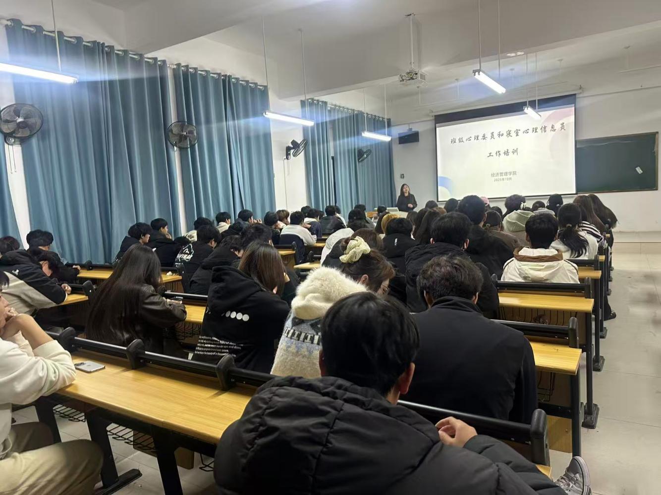 为筑牢校园心理健康防线,提升学生骨干心理服务能力,10月22日下午,经济管理学院开展了全体心理委员、寝室心理信息员培训大会。此次培训向寝室长、心理委员提供了更加细致的职责要求,为寝室长以身作则维护寝室秩序,护卫室友心理安全,保卫寝室安全强力赋能;为心理委员挺身而出发现危机群体,化解心理危机,播撒光明希望提供了指引。