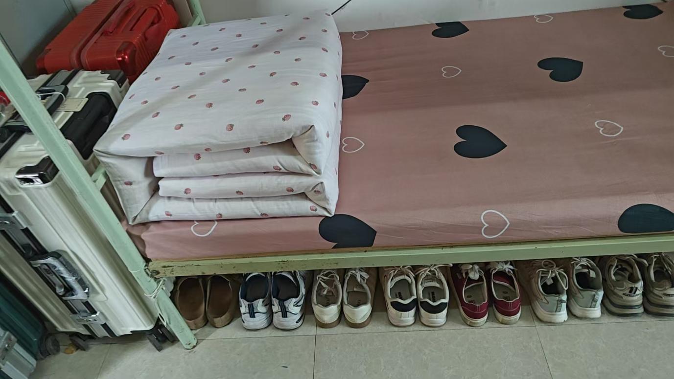 相较于训练场上的 “硬核” 挑战,内务整理是一场考验耐心与细致的 “修行”。起初,叠被子成了不少同学的 “难题”:软塌的被芯难以塑形,反复折叠仍只是松散的 “面团”,与 “方方正正、棱角分明” 的 “豆腐块” 标准相去甚远。但大家没有气馁,而是主动向教官请教技巧,对着示范视频反复揣摩。经过无数次的练习,原本 “不听话” 的被子渐渐变得整齐规范,宿舍的桌面、物品摆放也愈发井然有序。在这个过程中,同学们不仅掌握了内务整理的技巧,更在日复一日的规范中,悄悄养成了严谨细致、严于律己的品格。