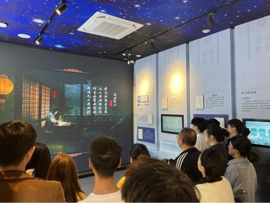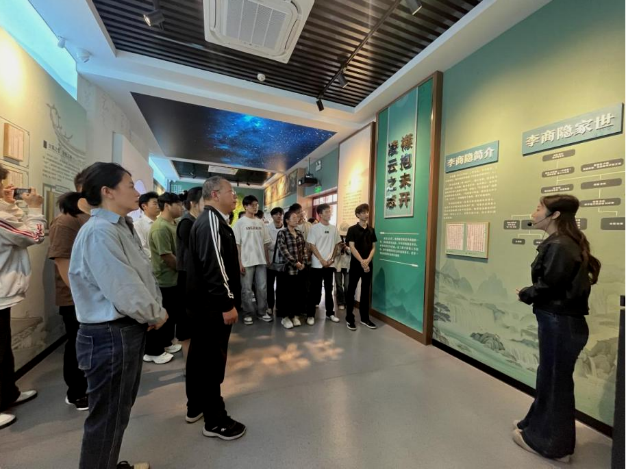在纪念馆专业讲解员的引导下,师生们率先走进了“义山厅”,唐代李商隐的人生画卷徐徐展开:幼时离乡远游、少年温卷求仕、中年困于党争。讲解声里,诗人人生轨迹清晰浮现,师生更动容于他一生怀揣家国情怀与凌云之才,却始终难寻抱负施展之机的遗憾。
