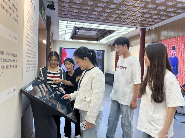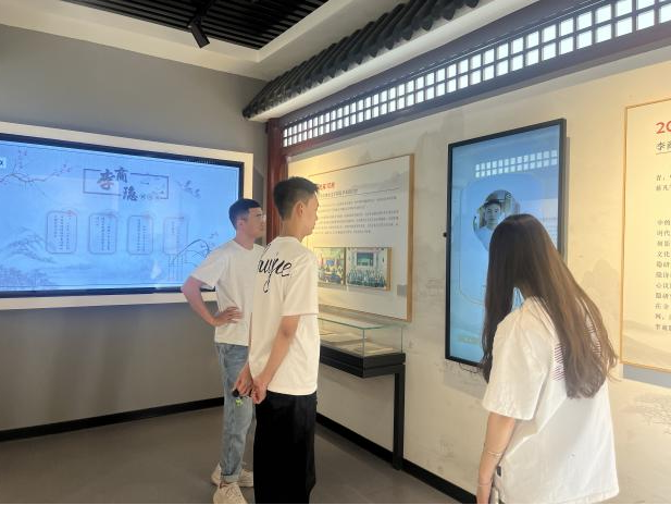 讲解结束后,师生们自由活动,与李商隐展开了一场别开生面的“交流”,或在融合数字科技的电子屏上体验传统书法,或借助现代AI科技塑造的古风形象,这些互动环节进一步消弭了与历史名人之间的距离感。