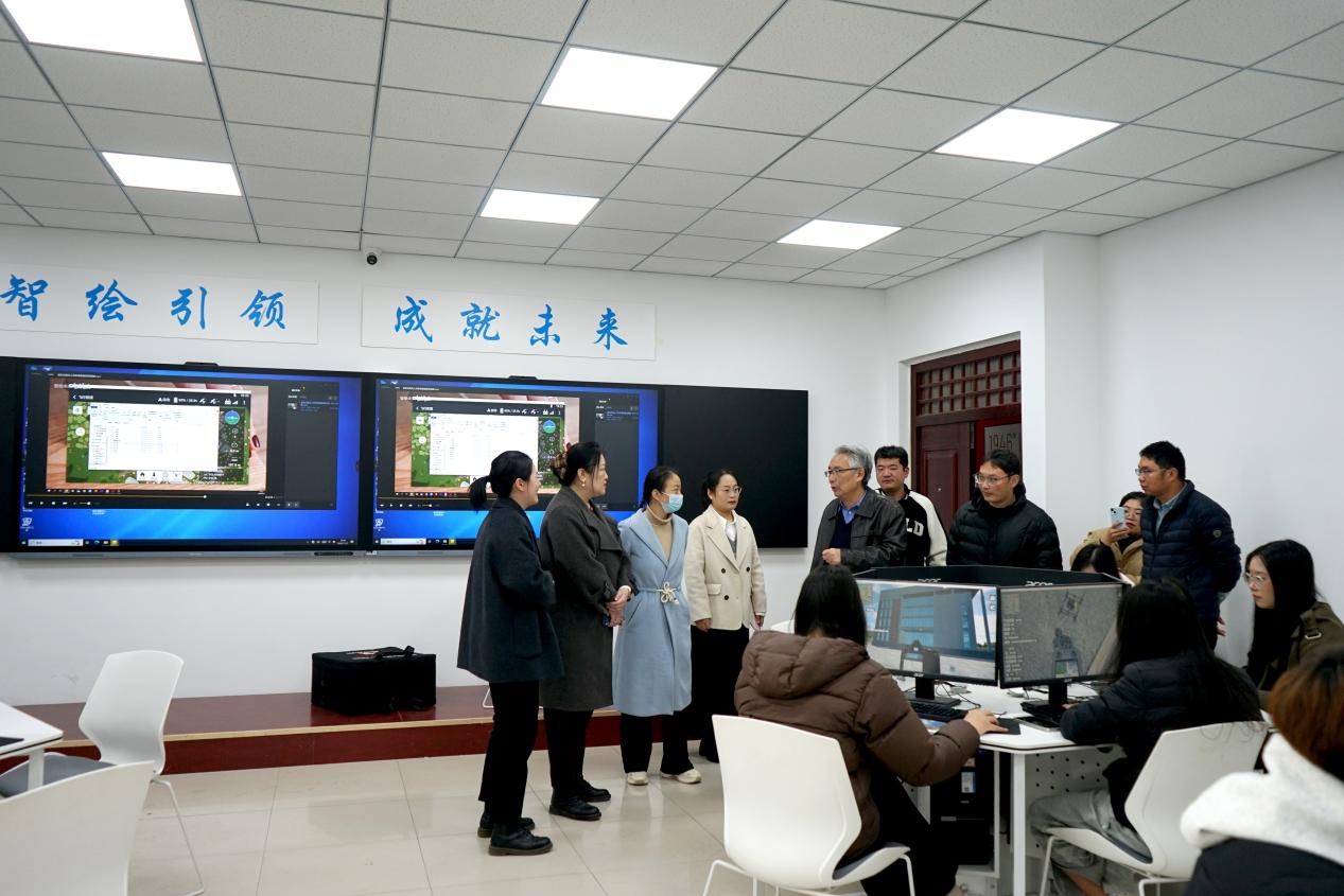 交流研讨会结束后,焦作工贸职业学院一行在戴晓琴副院长的带领下,实地参观了遥感工程学院的无人机飞行、无人机模拟飞行、无人机检测与维护、航空摄影测量虚拟仿真、摄影测量数据处理等实训课程教学设施,直观了解其教学实践条件与实训项目开展模式。