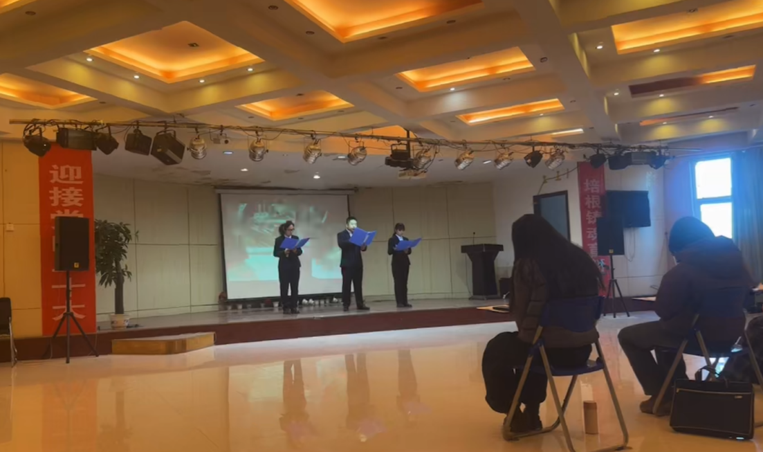 为传承红色基因、厚植家国情怀,我校红色诵读比赛于近日在沁阳校区礼堂顺利举行。建筑工程学院党支部选派李思远、丁佳慧、郎文文、李雪珂、贺文龙老师,以《可爱的中国》为作品参与角逐,用真挚的情感与铿锵的声音,重温革命先辈方志敏的赤子之心。比赛现场,暖黄灯光铺洒在礼堂的木质舞台上,背景幕布缓缓亮起——方志敏同志的黑白影像与鲜红的党徽交叠,“可爱的中国”五个毛笔字体在淡蓝色背景上格外醒目。建筑工程学院的参赛队伍身着统一的浅粉衬衫与深色正装裤登台,手持话筒的指尖微微收紧,却难掩眼中的热忱。