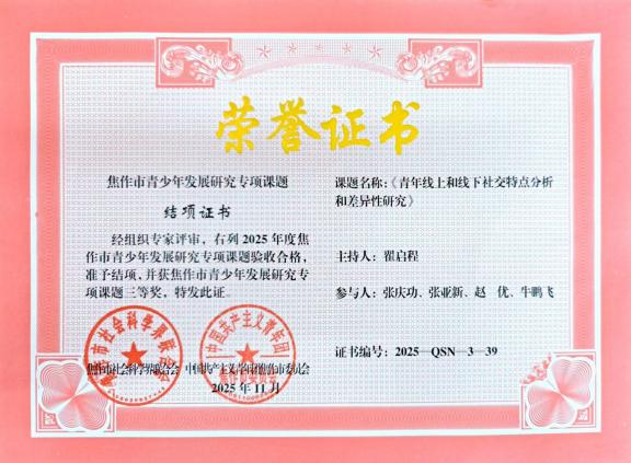 本次结项的课题涵盖范围广泛,聚焦青少年成长发展的多个关键维度,分别从心理、社会、文化、就业、城市融合等多角度切入,形成了较为系统的研究矩阵,充分展现了我院科研团队敏锐的问题意识与强烈的社会责任感。这些研究成果,不仅为焦作市青少年工作的政策制定与实践展提供了有益参考,也将有力反哺教育教学,促进课程内容更新与教学方法创新,提升人才培养质量。同时,高质量的科研产出增强了学院的学术影响力与社会服务能力,为学院的学科建设与特色发展注入了新的活力。