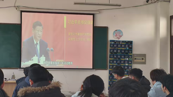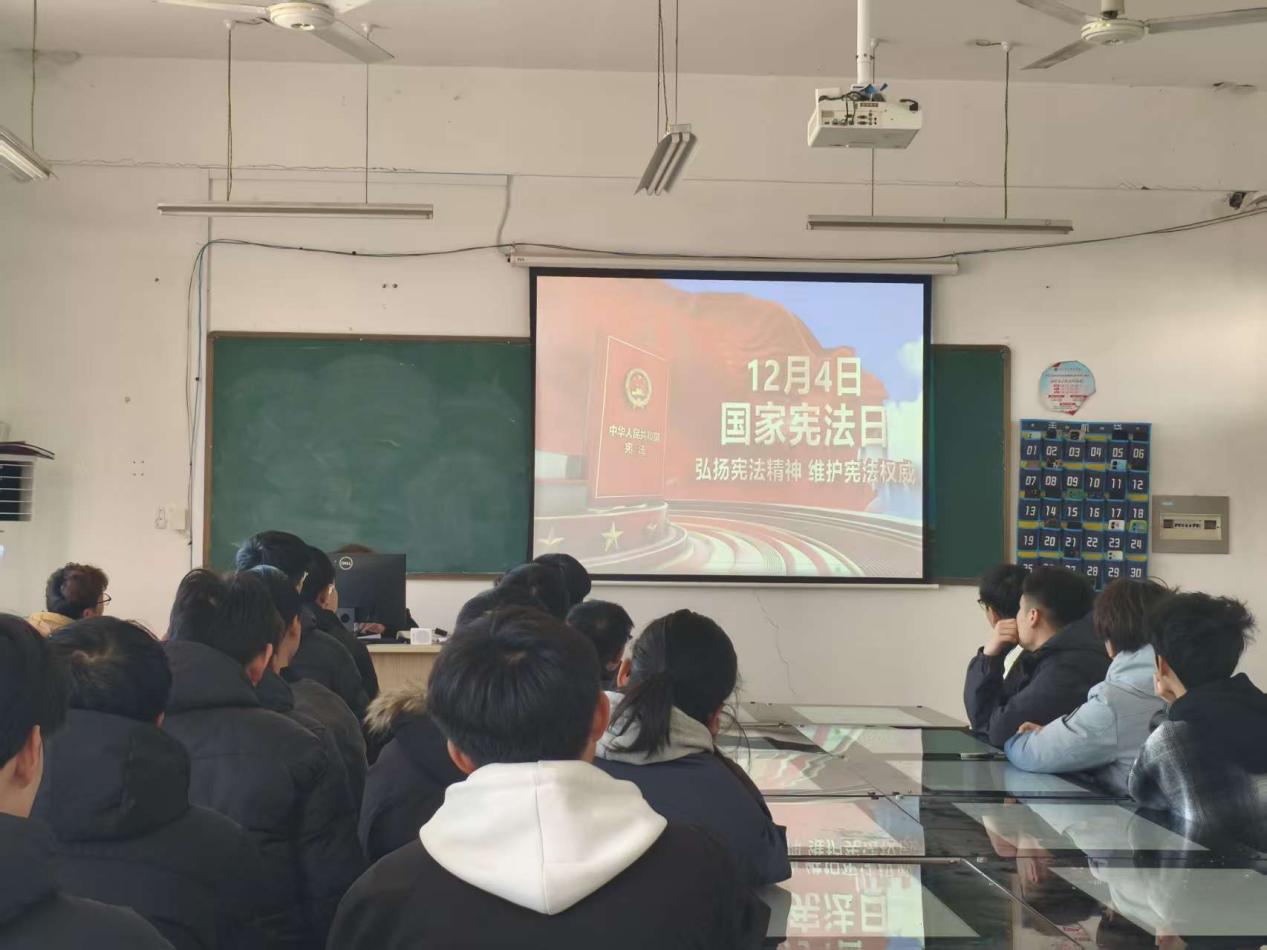为迎接第十一个国家宪法日,建筑工程学院2025级学生于12月4日上午在博学楼205教室举行“弘扬宪法精神,坚定法治信仰”主题活动。班主任贺智委老师与同学集中观看教育部“宪法晨读”网络直播,并开展互动学习。