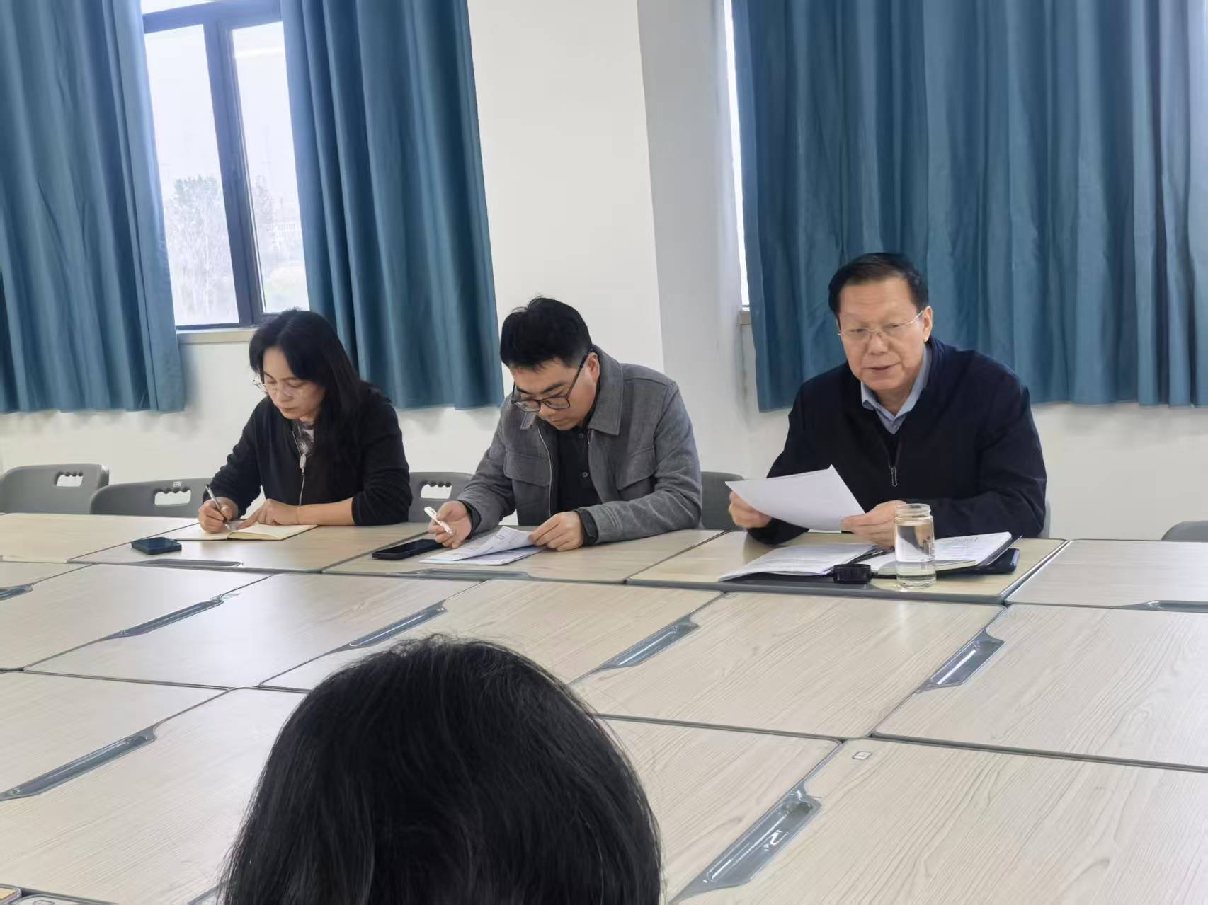 最后,韩建国院长作总结讲话,他围绕贯彻落实会议精神,向全体教师提出五项明确要求。一要深“学”理论,筑牢思想根基,不断提升政治素养与理论水平;二要“集”智聚力,整合优质资源,丰富教学内容,增强课堂的吸引力与感染力;三要精“备”教材与学情,因材施教,切实保障教学质量;四要细“研”教法,注重教学反馈,持续优化教学设计与实施;五要勤“思”创新,总结提炼经验,实现教学能力与育人水平的自我超越。他号召全体教师以此次会议为新起点,将“五字要诀”内化于心、外化于行,共同推动我院思政课建设迈向更高水平。