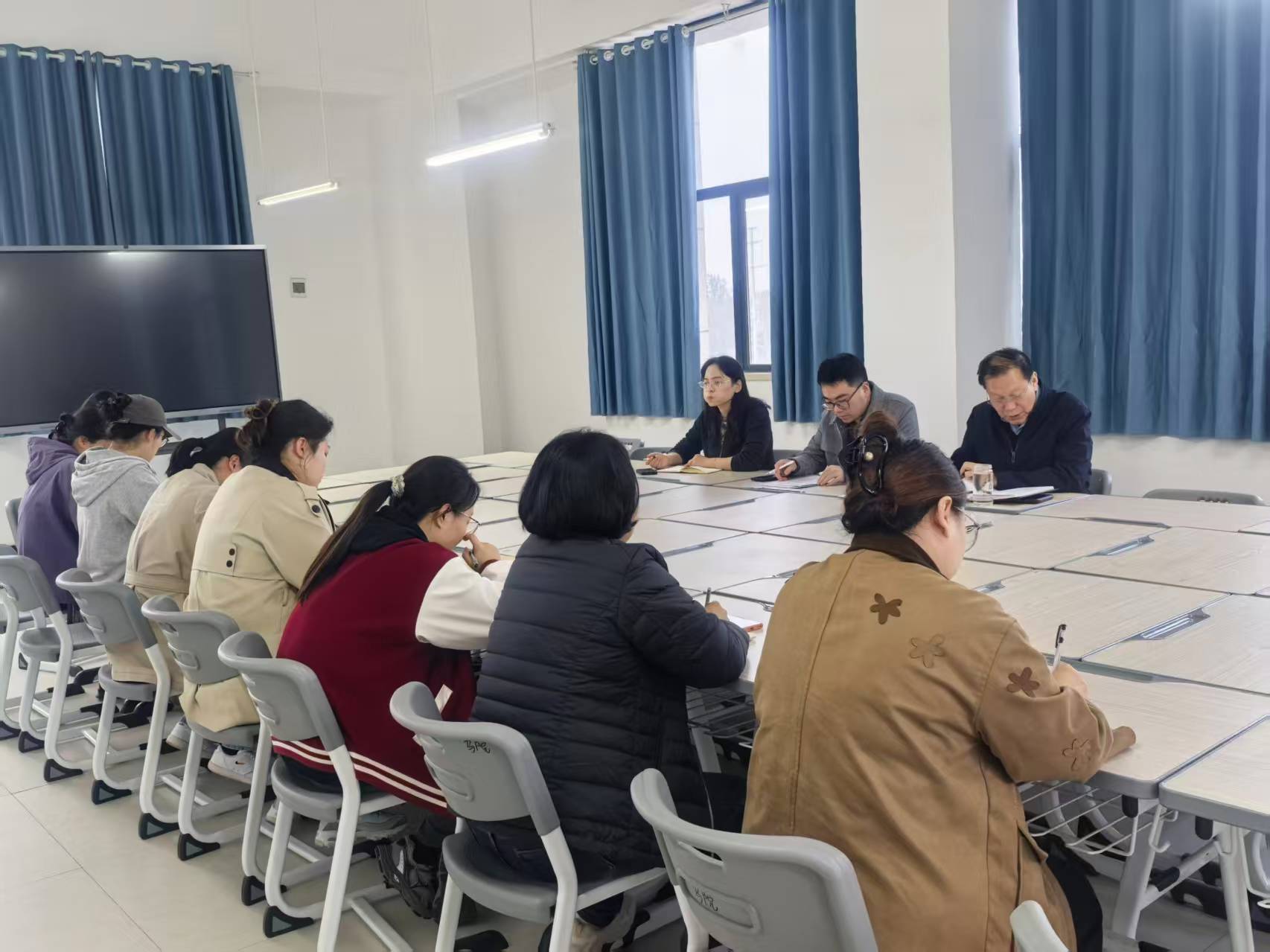本次会议专门结合10月13日下午与黄河交通学院马院联合开展的集体备课活动进行,集中分析研讨黄河交通学院马院教师和我院教师,在共同讲授一门课程的过程中,所反映出不同的特点,目的是通过横向对比,查找和发现我们自身的优点和不足,探索改进的方向,学习借鉴对方的好经验、好方法,不断提升我校思政课教学的质量与效果,讨论中,老师们各抒己见,纷纷发言。大家一致认为,此类校际合作是创新备课模式、拓展教学视野的重要途径,通过现场观摩代表教师的精彩说课展示,能更直观地启发教学思路,碰撞出创新火花,有效反哺自身教学,激发教学创新思维,对提高自身思政课教学质量帮助很大。