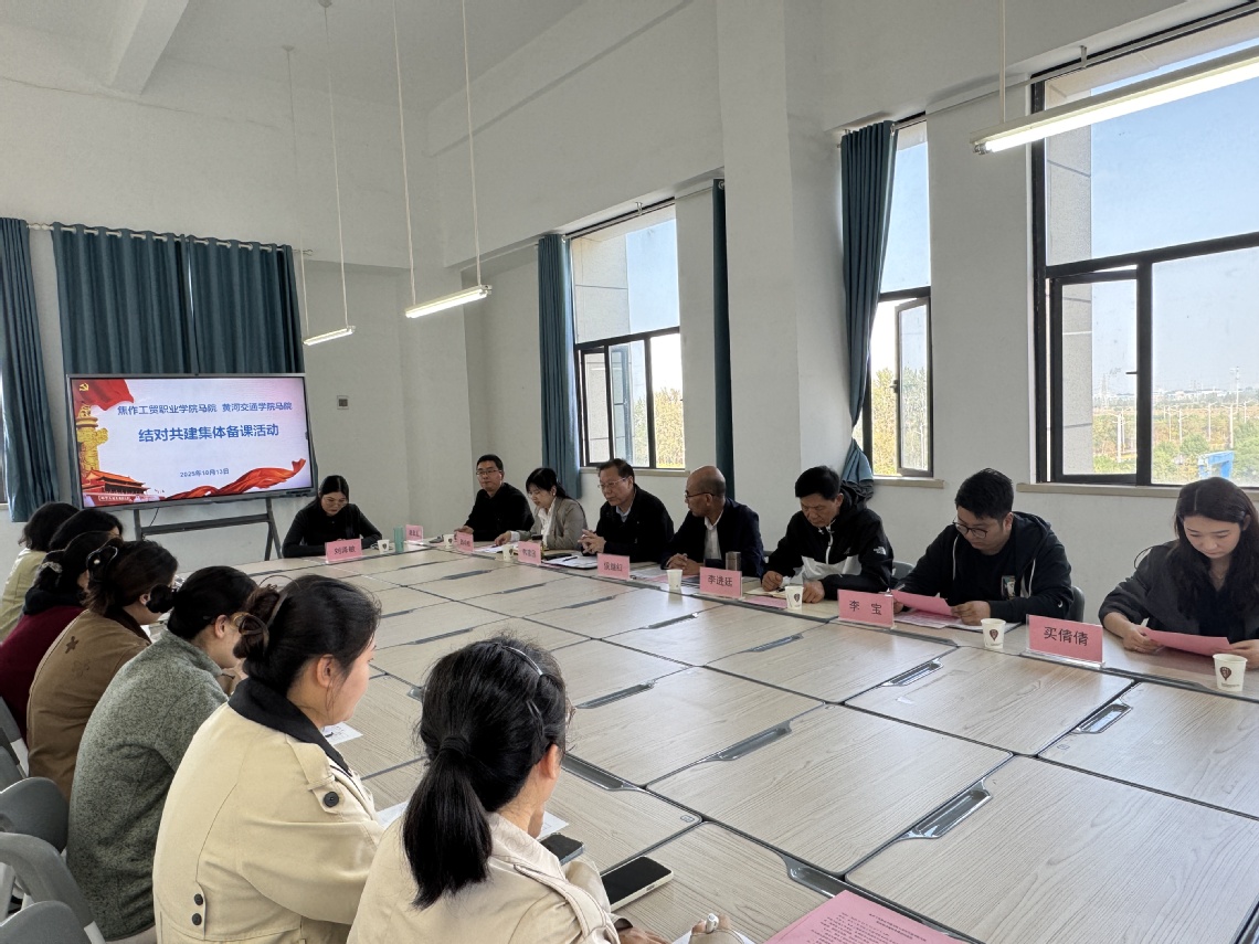 为深化思政课教学改革,促进校际交流合作,10月13日下午,我校马克思主义学院与黄河交通学院马克思主义学院在焦作工贸学院公共教学楼联合举办了一场校际共建集体备课活动。参加活动的领导有我校副校长侯继红、教务处副处长李宝;黄河交通学院马院院长李进廷、党委副书记魏培鲜、我校马院院长韩建国、副院长张翔,以及两校部分教研室主任和教师代表等。本次会议由我校马院副院长张翔主持。