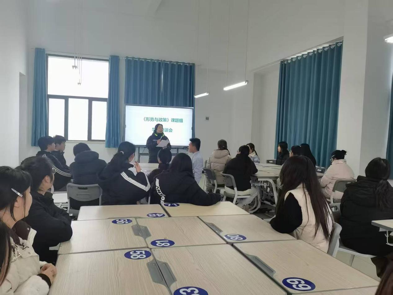 本次座谈会以深化教育教学改革、精准对接学生需求、切实提升育人质量为出发点和落脚点,围绕形势与政策课教学方法改进、授课质量提升、学生学习主动性调动等方面展开深入交流。学生代表提出授课内容要贴合时政热点、学生兴趣;课堂多增加主题讨论等互动环节;由教师确定主题,提前布置任务,让学生在课堂上进行分享;减少文字、增加图片视频等优化课件等建议。