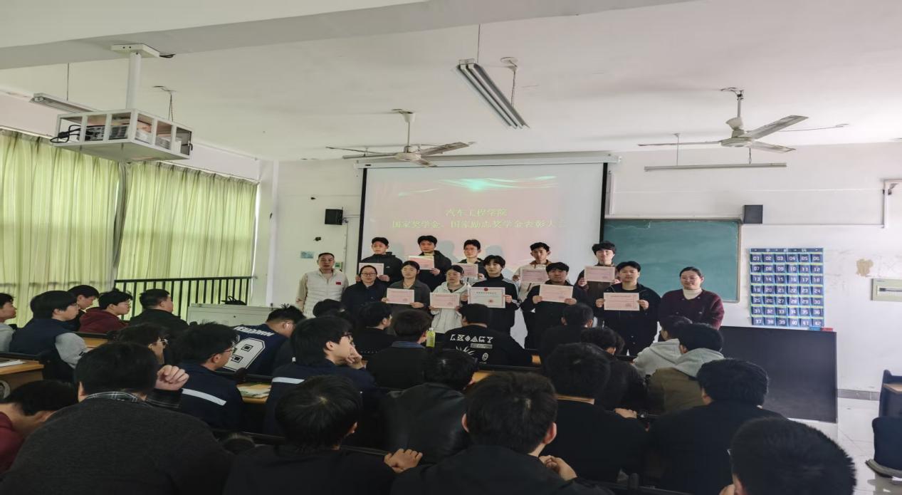 近日,汽车工程学院召开国家奖学金、国家励志奖学金表彰大会。学院院长张宏利、学管副院长马海涛、全体辅导员及全体学生参加大会,共同见证获奖学子的荣耀时刻,凝聚奋进力量。大会在庄严的国歌中拉开帷幕,现场气氛热烈而庄重,全体师生精神饱满、肃然起立,共同唱响国歌,表达对祖国的崇敬与热爱。随后,学管副院长马海涛宣读表彰决定,明确了本次国家奖学金、国家励志奖学金获奖学生名单,对获奖学生的优异表现给予高度肯定,鼓励全体学生以获奖学子为标杆,见贤思齐、奋起直追。