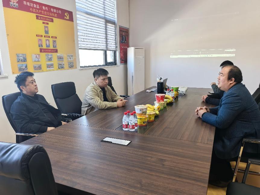 座谈会上,华味坊生产经理闫荣升介绍了公司发展历程、核心产品布局及未来战略规划,强调企业在速食食品等领域的创新需求,并表达了与高校共建产学研平台的意愿。生物工程学院院长王恒从学科建设、科研成果转化及人才培养等方面介绍了学院优势,提出联合建立“实践教学基地”、开展“定向难题攻关”、探索“订单式人才培养”和“工学交替”等合作构想。双方围绕生产技术攻关、学生实习就业、共建联合实验室等议题展开热烈讨论。
