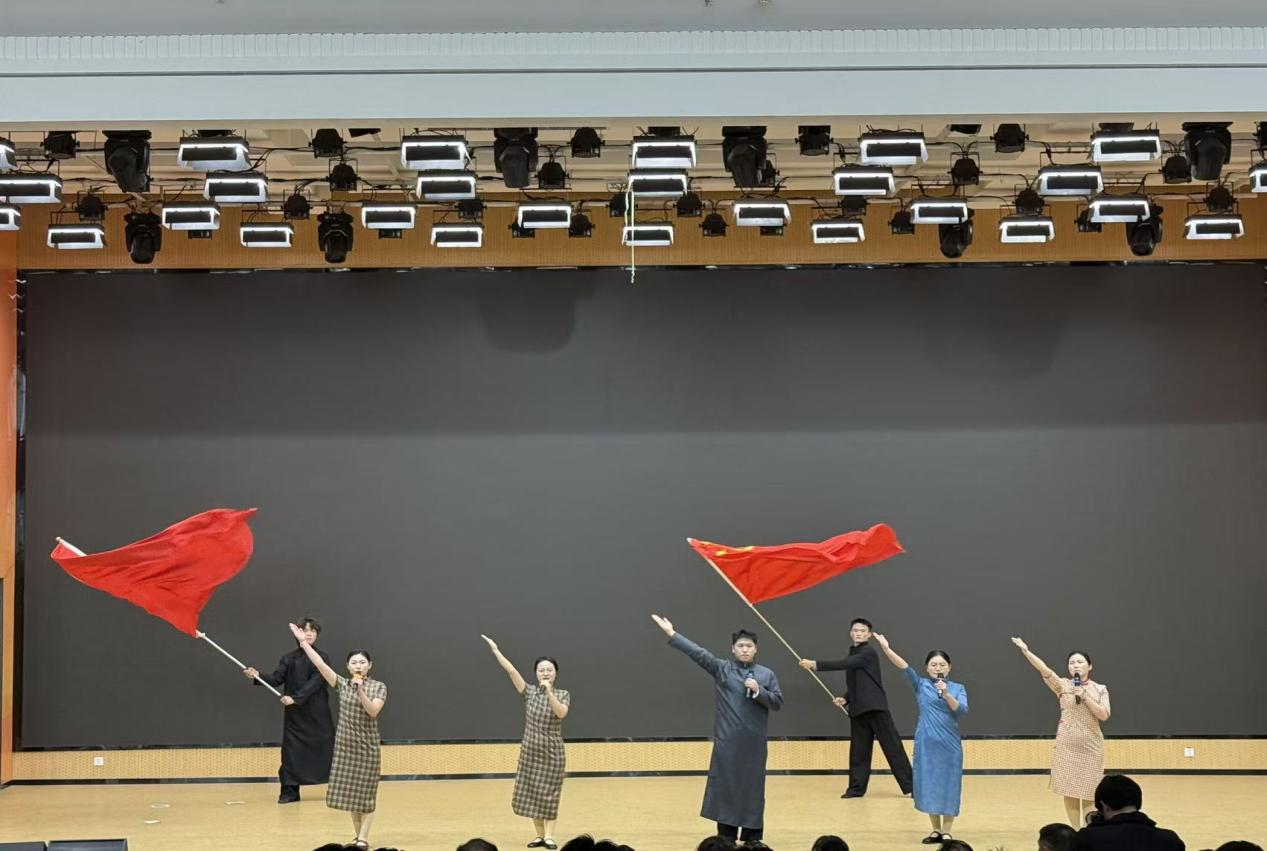 比赛现场,学前教育学院参赛师生精神饱满、气场十足,以抑扬顿挫的语调、真挚饱满的情感搭配富有感染力的肢体动作,将《南京、南京》所承载的历史厚重感与民族不屈精神演绎得淋漓尽致。沉浸式的表演直击人心,深深打动了现场每一位评委与观众,赢得阵阵热烈掌声,最终成功摘得桂冠。